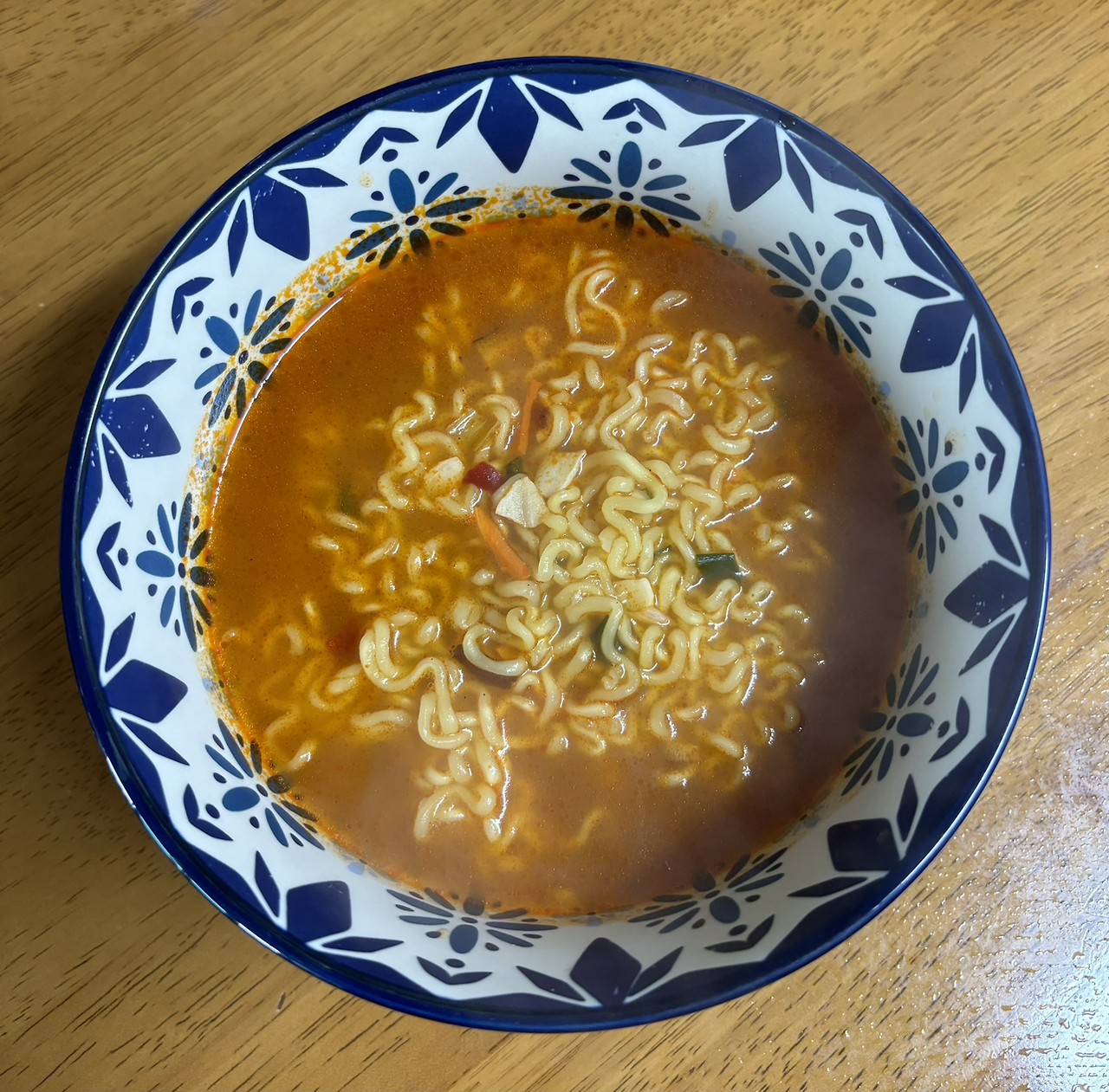 국물 먼저 먹어본다. 매콤이다. 감칠이다. 고소한 맛이 따라온다. 뭔가 개운한 맛도 있다. 면은 쫄깃하고 부드럽다. 부드러운 면발도 면발이겠지만 면을 감싸고도는 기름의 성분 때문에 더 부드러운 것 같다. 유성스프 때문이 아닐까. 면을 먹을 때도 매운맛이 느껴진다. 다시 국물을 떠먹어보니 소고기 맛도 난다. 면을 건졌을 때 잔잔하게 풀린 계란이 따라온다. 건더기엔 미역, 파가 보인다. 먹는 내내 부드러운 면발이 사람을 기분 좋게 한다. 이제 마지막이다. 그릇째 국물을 마셔본다. 진하면서도 얼큰함, 감칠맛과 고소함까지 따라오니 참 맛있다. 약간 육개장 맛도 나는 것 같고. 비 살짝 내리고 흐린 날 이 라면을 먹으니 참 잘 어울린다. 부드러운 면발에 얼큰하고 시원한 국물과 참깨의 고소함의 콜라보. 생각보다 맛있고 맑은 날 보다 흐린 날 추천! 라면봉지 앞에 적힌 문구처럼 ‘얼큰하고 고소한‘이 딱인 라면이 아닐까. 참깨라면은 주로 사발면으로 먹었었는데 한 번씩 생각날 라면이 되지 않을까 한다.