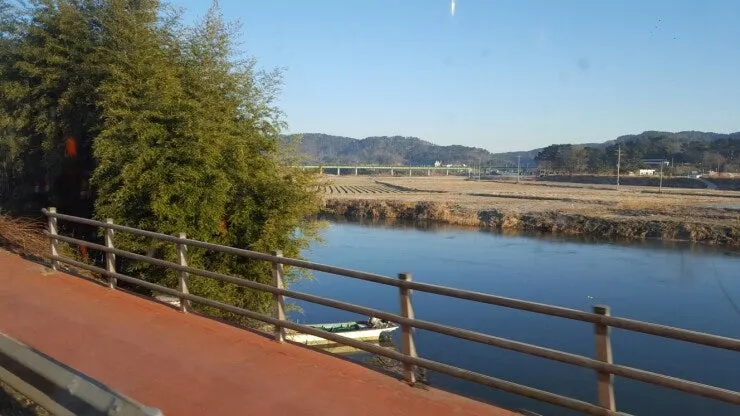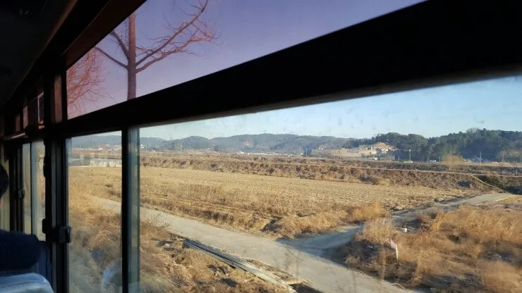 부랴부랴 사과한 개를 잘라 나왔다. 아침식량이다. ​아침, 사과 한 개면 거뜬하다. ​​​​​​​​​​​​​​​​버스 안에서 나름 운치를 즐기며 바깥풍경을 본다. 겨울논과 밭이다. ​겨울이라 그저 휑하니 쓸쓸해 보이는 ​그래도 꽤나 정겨운 풍경이다. ​