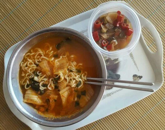 아침, 왠지 라면이 당겨서 라면으로 시작하여