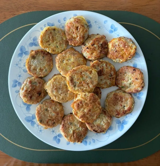 점심때 먹으려고 구운 동그랑땡이에요. 새로 프라이팬을 구입한 기념으로 구워봤지요.