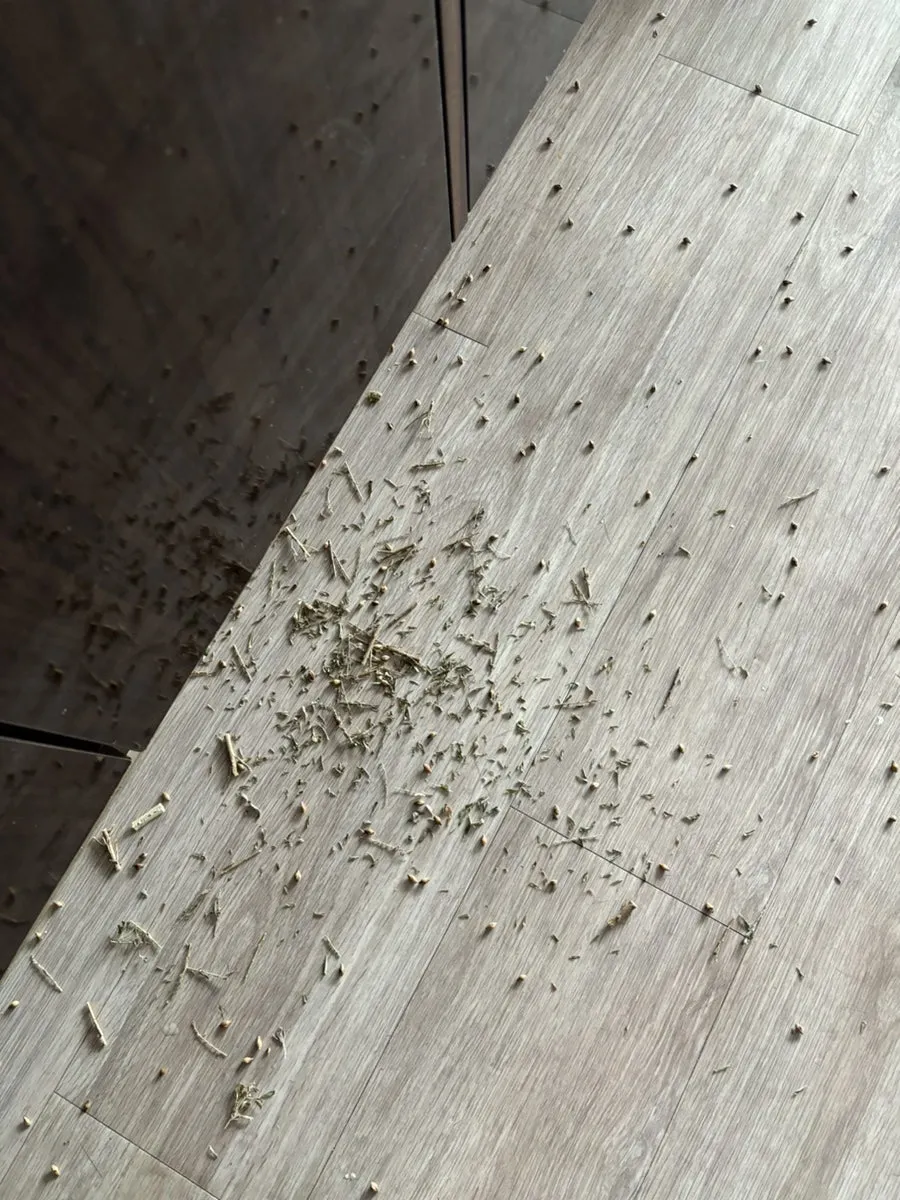 차 우리는 재료들을 차 끓이는 메이커에 담다가 낭패를 보았다. 세 가지 종류를 담고 뚜껑을 닫으려는 찰나 이런 참사가
