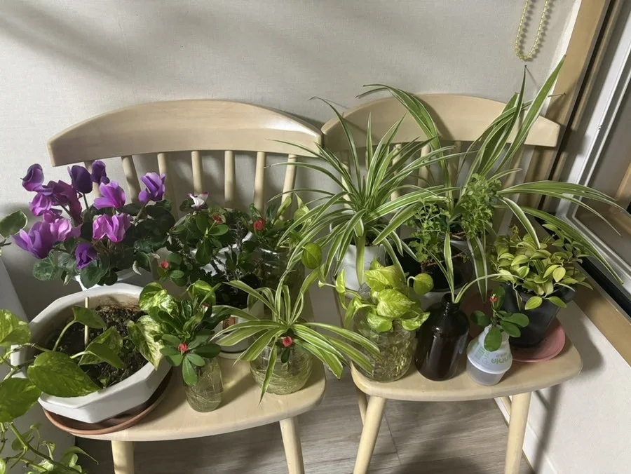 오랜만에 화초들 하나하나 꺼내어 물 주기를 해봐요. 한 시간 정도 차분히 해 봅니다.