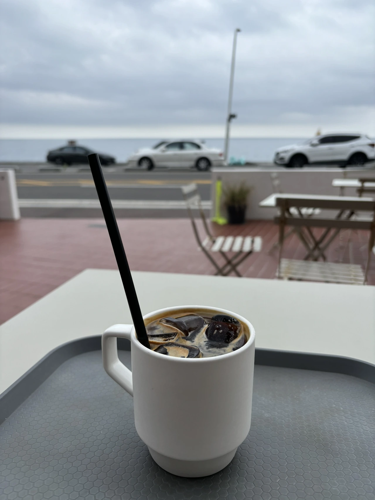 소화 겸 시장 주변을 올라가다 버스 정류장을 발견하고 기뻐하며 5분 후 정자행 121번을 타고 주전몽돌에 내려 주택 개조한 예쁜 카페에 앉아 바다 뷰 바라보며 책을 읽는 이 낭만이란...