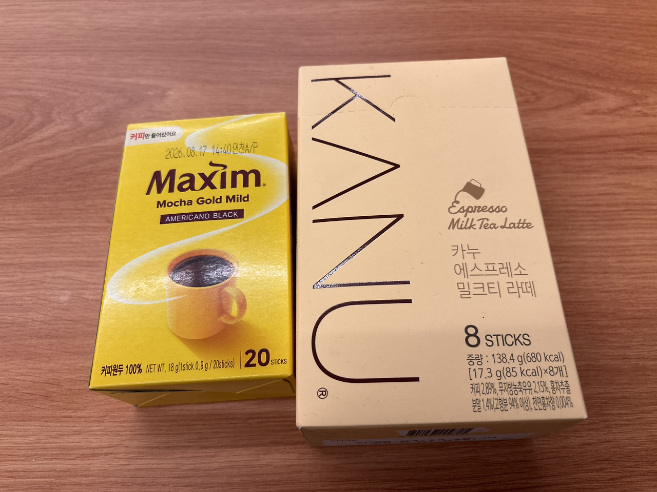 커피와 함께 먹을 과자로는 초코버터샌드 & 땅콩버터샌드를 골랐다. 앞전에 먹었던 땅콩버터샌드는 맛이 좋았던 기억에, 초코버터샌드는 맛이 궁금해져 골랐다. 블랙커피와 믹스커피는 맥심 아메리카노 블랙 & 카누 에스프레소 밀크티 라떼로. 조용히 글 쓸 때나 책 읽을 때, 당 떨어졌을 때 꼭 필요한 아이들이다.