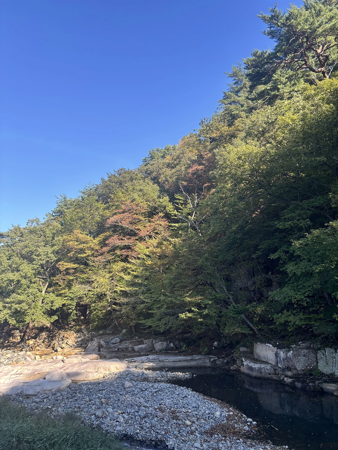 산에서 내려오는 물이 맑긴 하지만 여기 계곡물은 더 더 맑게 느껴졌다. 그래서 그런지 눈이 많이 갔다.