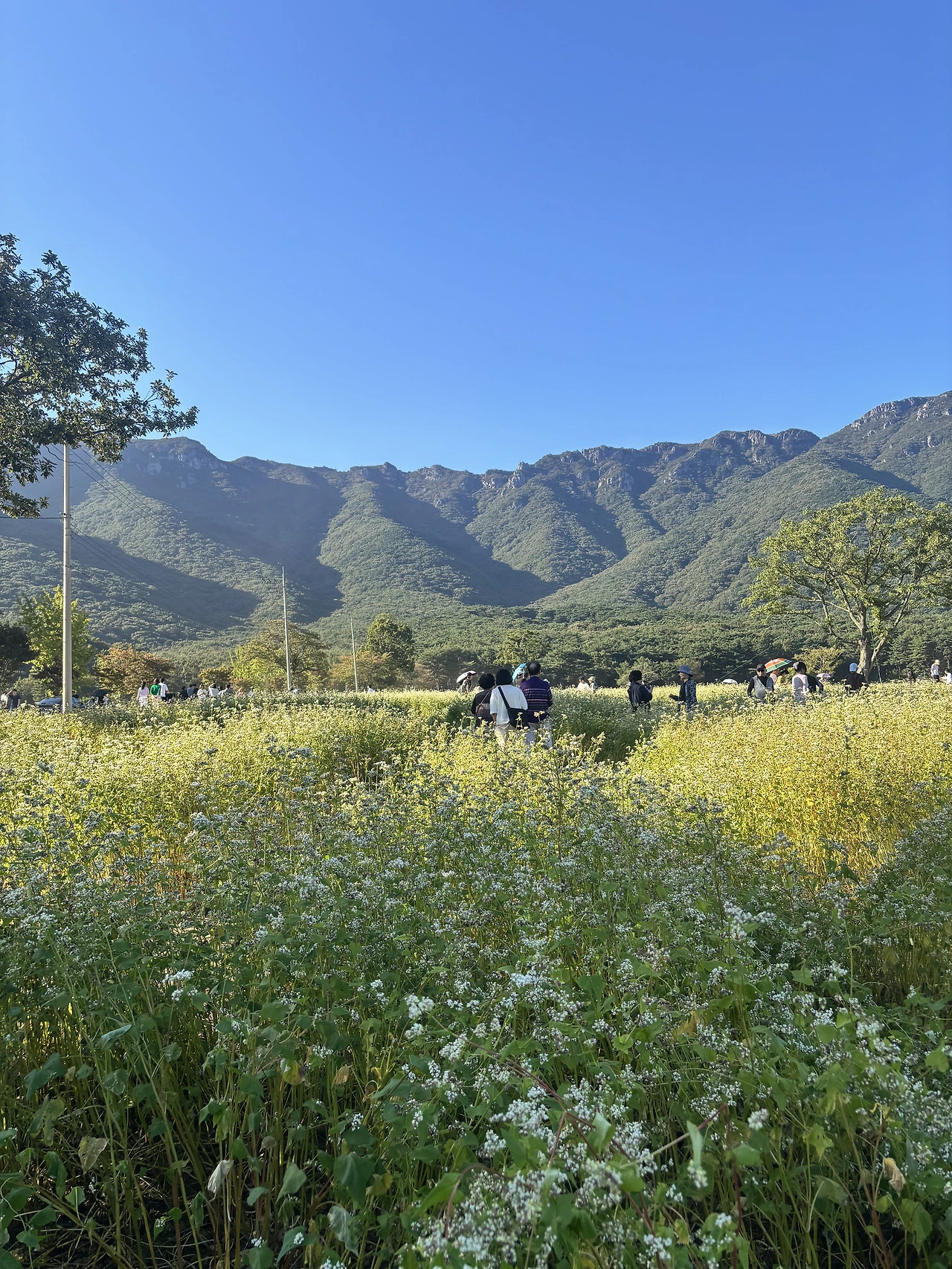 영남알프스 산과 메밀꽃 밭의 조화가 아름다웠다. 그 속에서 사진을 찍으며 즐거워하는 사람들의 모습도 만났다.