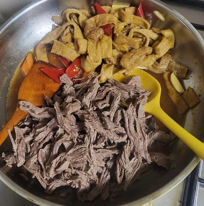 우리 집 김밥 속 재료는 시금치, 계란, 어묵, 당근, 유부가 들어간다. 이때 소고기 장조림을 만드는데 어묵, 당근, 유부도 함께 조린다. 소고기와 단짠 간장이 어우러져 정말 맛있다.