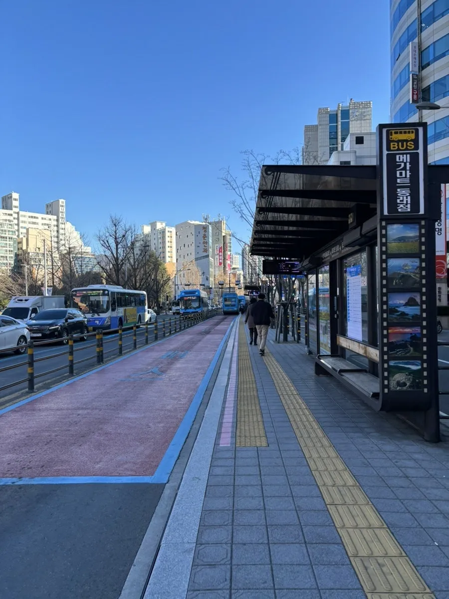 차 운전을 잘 안 해서 대중교통을 자주 이용합니다. 부산 가는(울산부산 간 환승버스) 버스 타고 눈감고 한 50분 가니 부산 노포동에 도착했어요. 지하철 환승해서 동래역에 내려 또 버스 타고 해운대로 갑니다. 뭔가 노선이 복잡하게 꼬인 거 같지만 시간이 더 걸릴 뿐이지 버스여행도 재미나요.