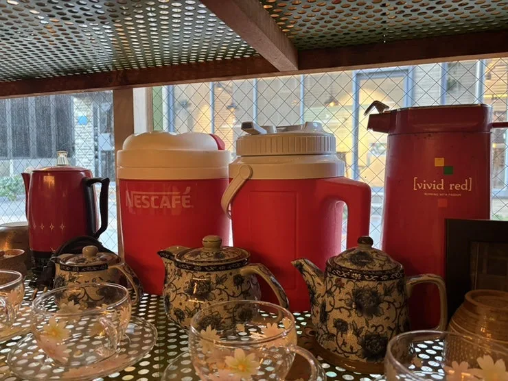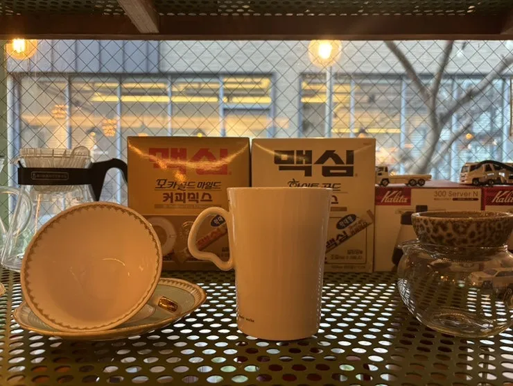 맥심 커피 박스며 레트로 컵들, 옛날 접시들, 사은품으로 딸려 나온 보냉통 등 물건 하나하나가 범상치가 않다.