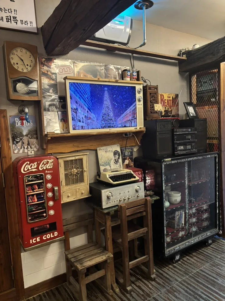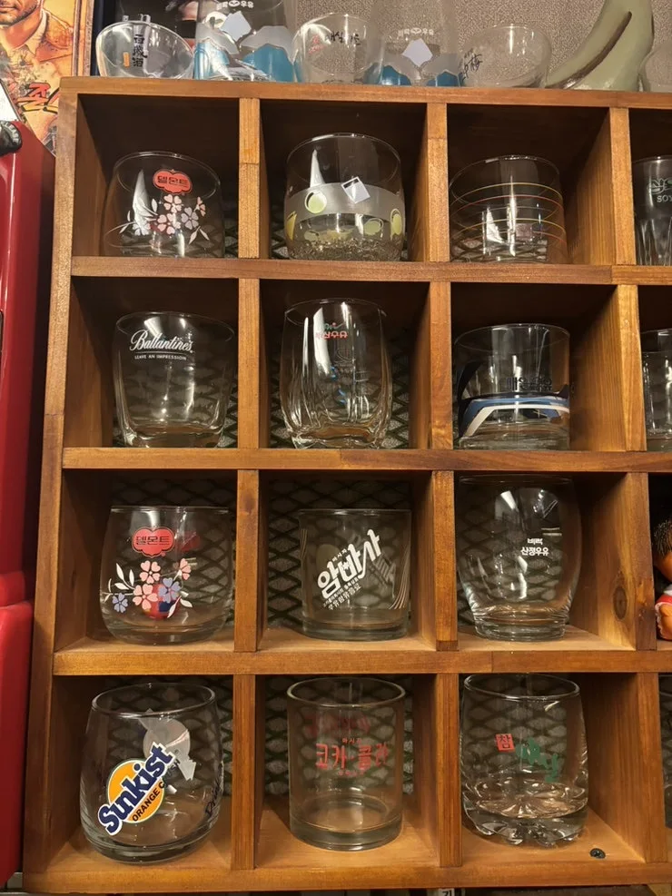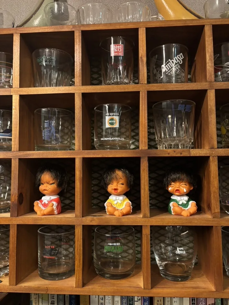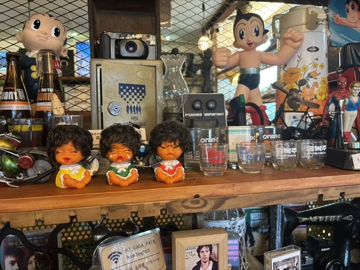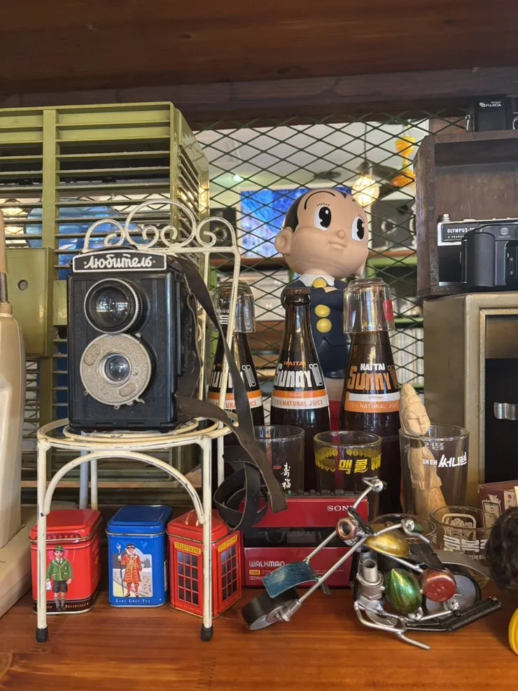 아기자기한 옛 소품들이 시선을 끌었다. 아톰 하며 환타 병, 스피커, 레트로 유리잔, 레트로 소주잔, 못난이 삼 형제 등 아주 재미난 물건들이 많다.