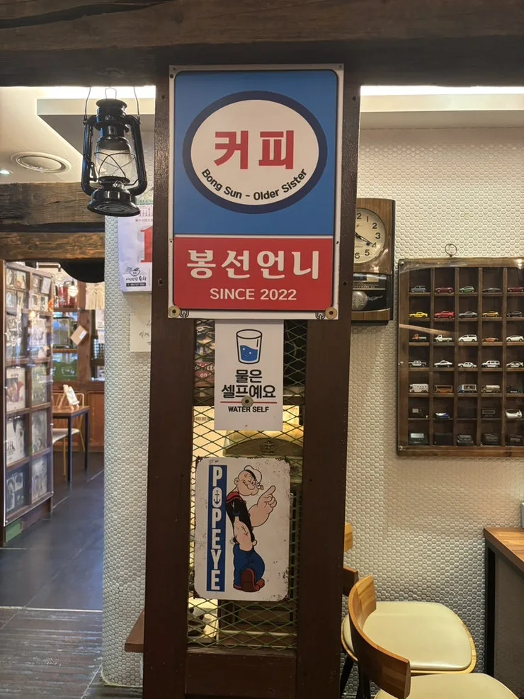 카페 봉선 언니가 어떤 공간일까 궁금했었는데 마음껏 구경하고 와서 참 좋고 나름의 힐링 시간이 되었다. 한 번씩 놀러 와야겠단 생각이 들었다. 레트로 물건들도 맘껏 즐기고 행복한 시간 여행이 되었다.