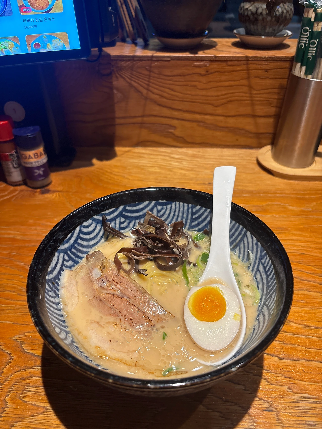 돈가스와 라멘이 주메뉴인데 이날 돈코츠 라멘을 먹었다. 맛에는 변함이 없다.