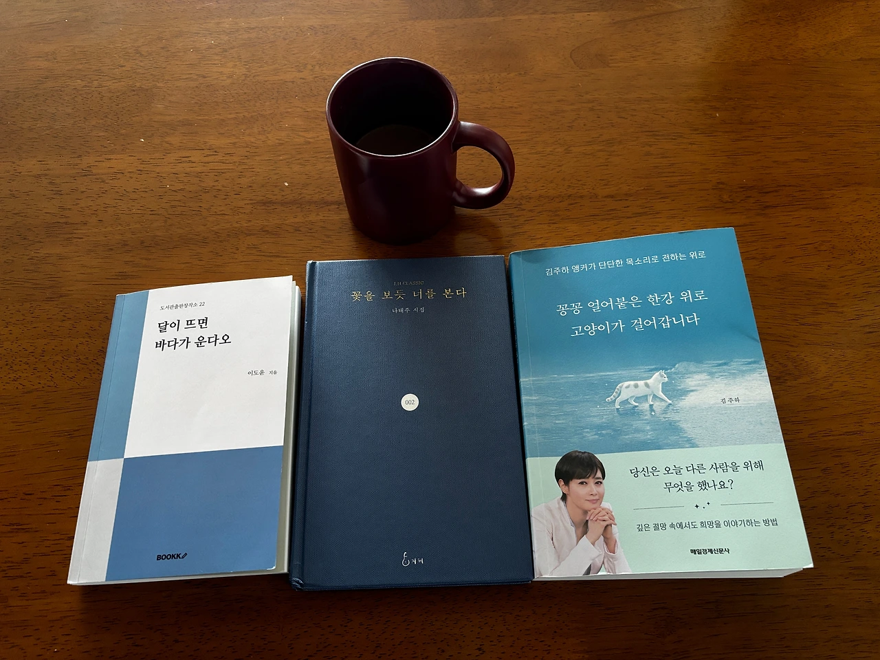 브런치 블라썸도윤 작가님의 책 <달이 뜨면 바다가 운다오>의 필사를 시작했습니다. 요즘 흥미롭게 읽고 있습니다. 위의 세 책들을 돌려가며 필사할 거랍니다. 김주하 님도(앵커) 성공한 이면에 많은 피와 땀, 노력 그리고 마음고생의 길을 걸어왔더라고요. 살아온 세월의 노하우를 바탕으로 지금은 어려운 사람들을 돌아보며 좋은 일을 많이 하고 계시더라고요.