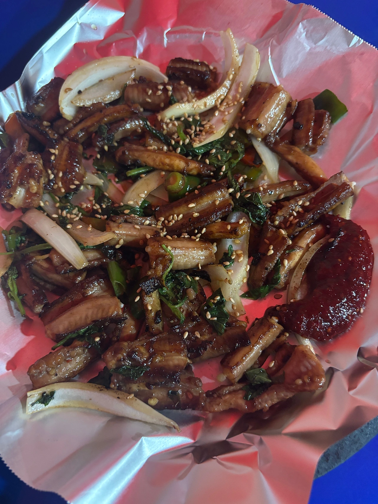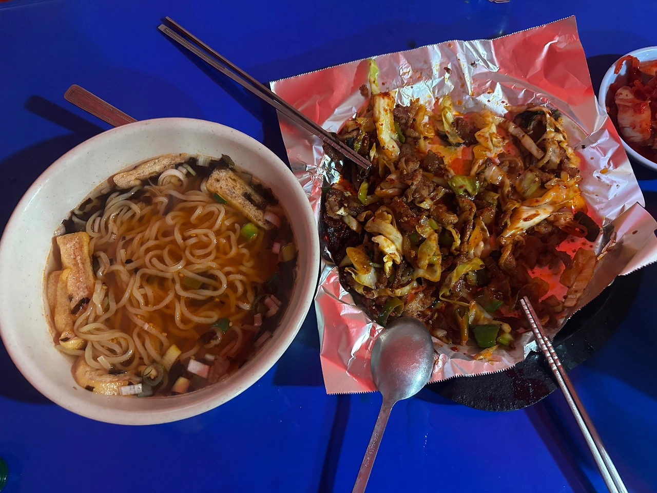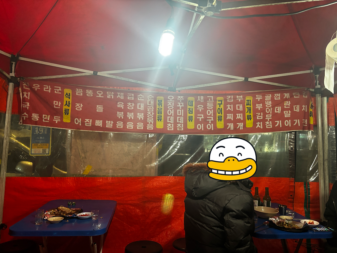 지니 씨는 이런 분위기(포장마차)를 예전부터 좋아했다. 심심하던 차에 맛나게 먹을 생각을 하니 괜히 신났다. 주문하기 전 어묵 한 그릇이 국물과 먼저 나오고 짝지가 시킨 오돌뼈도 나왔다. 우동도 한 그릇 주문해서 먹었는데 면이 기존 우동면이 아니라 좀 생소했다. 국물맛은 괜찮았다. 맛나게 나누어 먹고 숙소로 돌아왔다. 짝지는 많이 피곤한지 일찍 잠자리에 들고 나는 이 밤을 그냥 보내기가 아까워 다시 포장마차를 찾았다. 아까 왔을 때 옆 테이블에 손님이 꼼장어를 시키는 걸 보고 맛있겠다 생각을 하고 있었다. 그래서 꼼장어 맛을 보기 위해 다시 간 것이다. 꼼장어는 생각 이상으로 맛있어서 그 기대를 저버리지 않았다. 부산 ㅐ곰장어 맛만 봤지 여기(서울 미아역)에서 맛볼 거라곤 생각도 못했다.