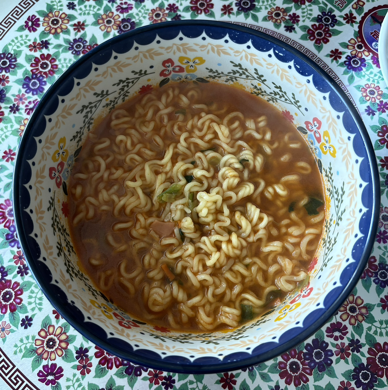 면은 굵지도 얇지도 않은 그 중간이다. 면의 식감도 부드러움과 쫄깃함의 그 중간이다. 한 젓가락 먹어봤을 때 여러 가지 맛을 느낄 수 있었다. 야채의 풍미가 다른 라면에 비해 강했다. 당근, 청경채, 양배추, 파가 들어서였을까... 거기다 뭔가 익숙한 맛은 햄이 추가되어 나온 맛이었다. 국물은 햄과 여러 가지 야채들이 어우러져 진하면서도 뭔가 달큰한 맛이 따라왔다. 약간의 매운맛도 느껴졌다. ‘단순하다’ 이런 맛보다는 여러 가지 조합된 맛이 느껴진달까... 삼양라면의 맛은 이렇다 딱 정의 내리기가 힘든 것 같다. 어릴 때 참 맛있게 먹었던 기억이 떠오른다. 세월이 흘러 입맛도 변했나..? 삼양라면은 늘 당기는 맛은 아니고 한 번씩 어떤 맛이었지? 기억하고 싶은 맛? 그런 라면이 아닐까 한다. 이상 야채풍미 가득 먹기 무난한 그렇다고 절대 무시할 수 없는 그런 맛? 한 번씩 맛보고 싶어지는 어느 때고 친근한 삼양라면 먹어 본 소감문을 마칩니다.