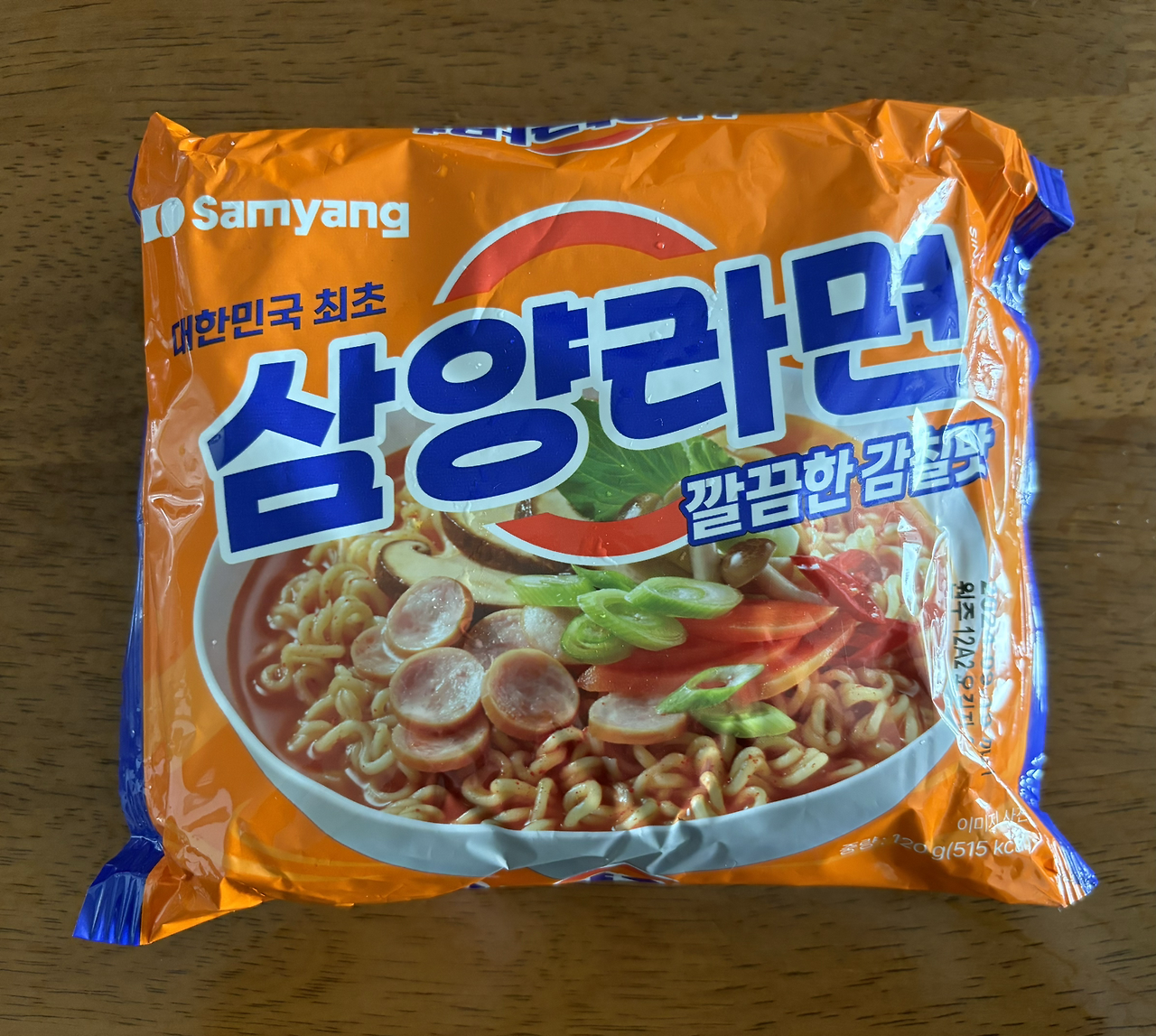 대한민국 최초 삼양라면, 깔끔한 감칠맛, SINCE 1963이라고 표지에 적혀있다. 처음 출시했을 때는 닭고기 베이스 국물이었고 그 이후에 소고기, 지금은 햄맛을 중심으로 맛을 내었다고 한다. 아마도 어릴 때 맛본 삼양라면은 소고기 베이스였지 않나 싶다(소기름을 이용해 면을 튀겼다고) 고소하고 정말 맛났던 기억이...