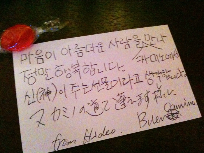 아... 히데오 상이 쪽지를 남겼다. 부스럭 거리는 소리는 그가 내 방문 밑으로 종이를 넣는 소리였나 보다.