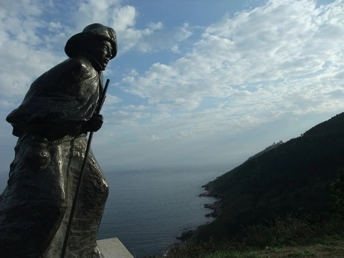 아주 예전의 순례자가 그 길목을 지키고 있었다. 끝을 앞둔 순례자의 표정이 진지하다. 저 아저씨는 어떤 기분이었을까? 혼자서 이 길을 고독 속에 걸어온 사람의 마음은 어떨지 모르겠다.