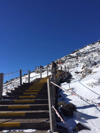 한라산 말고는 제주의 어떤 곳도 가고 싶지 않았던 나의 염원이 통했던 걸까, 극적으로 등산을 가려던 날 새벽에 입산 통제가 풀렸다. 그렇게 나는 갓 내린 눈이 뽀드득 거리는 한라산에 발을 디디게 되었다.