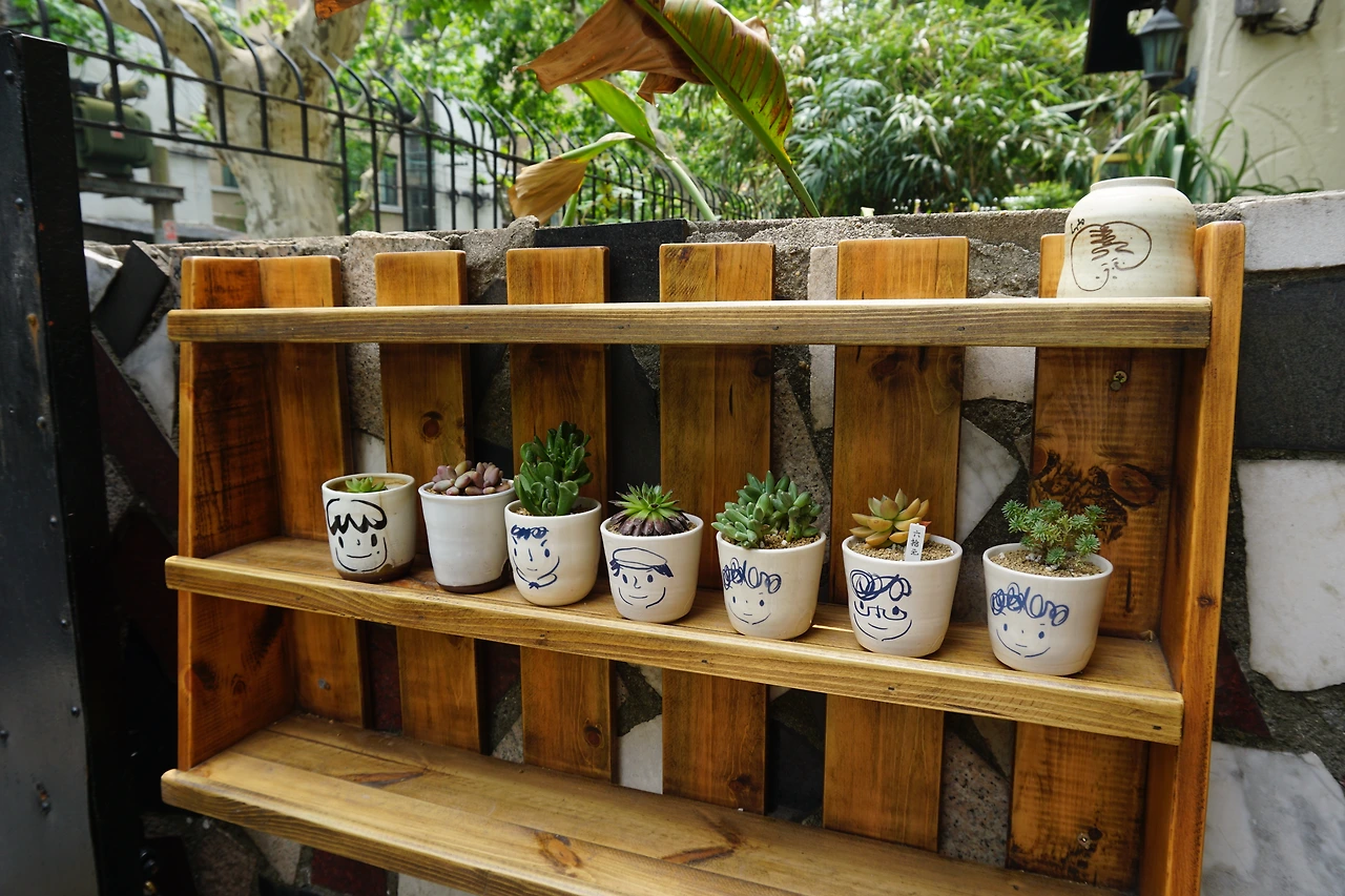 우캉루, 후난루를 지나 걸으니 안푸루(安福路)가 나온다. 커피 한 잔을 사 오른쪽을 보며 또 조금 걷는다. 맞은편에 케이크라고 쓰여 있는 집을 발견하고 건너가 보는데, 케이크를 파는 집은 아니고 소품 편집샵이었다. 작은 다육 식물들을 밖에 진열해둔 것이 귀여워 사진을 찍었다.