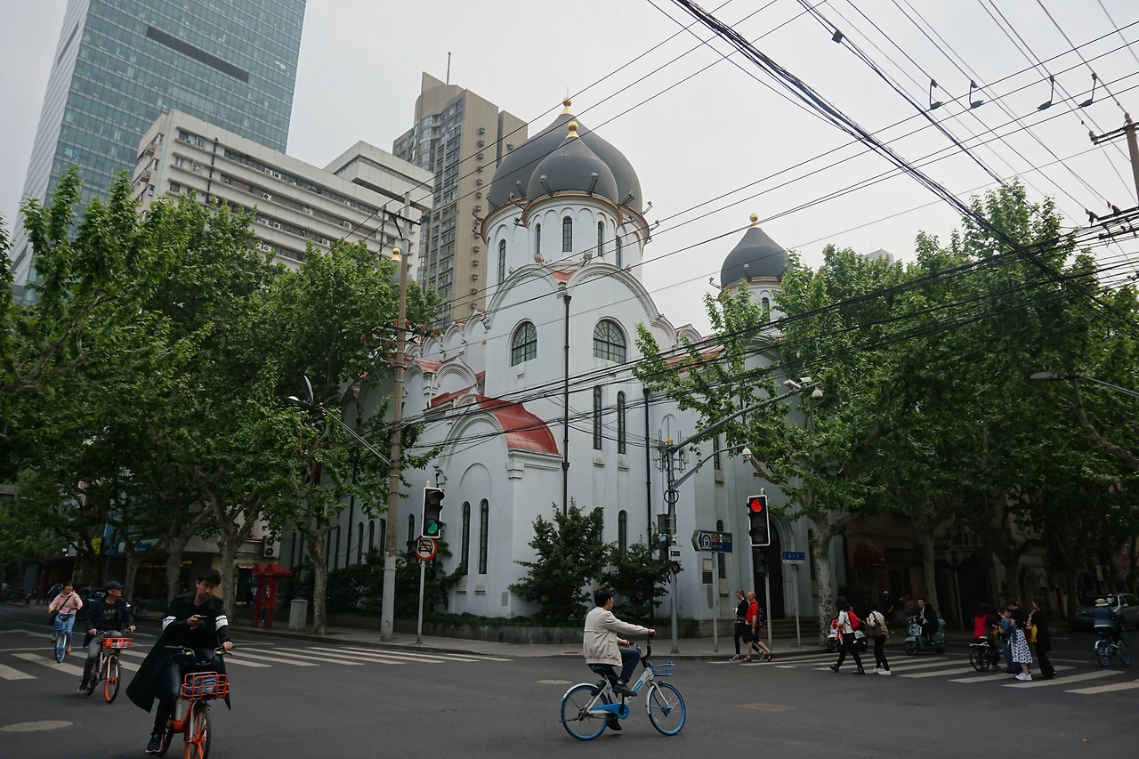 시작은 10호선 교통대학 역에서 했지만, 발길 닿는 대로 걷다 보니 어느새 1호선 샨시난루(陕西南路) 역까지 와버렸다. 홍콩계 대형 쇼핑몰 환마오(环贸) iapm이 있는 이곳엔 좀 특이한 문화유적이 있는데, 바로 동방정교회 예배당(东正教堂)이다. 러시아에서 중국으로 넘어오면서 이곳에도 예배당이 생긴 것 같은데, 특별히 개인적인 신앙이나 종교는 없지만 확실히 이런 종교적인 건축물은 그 자체로 풍겨오는 신성한 느낌이 있는 것 같다.