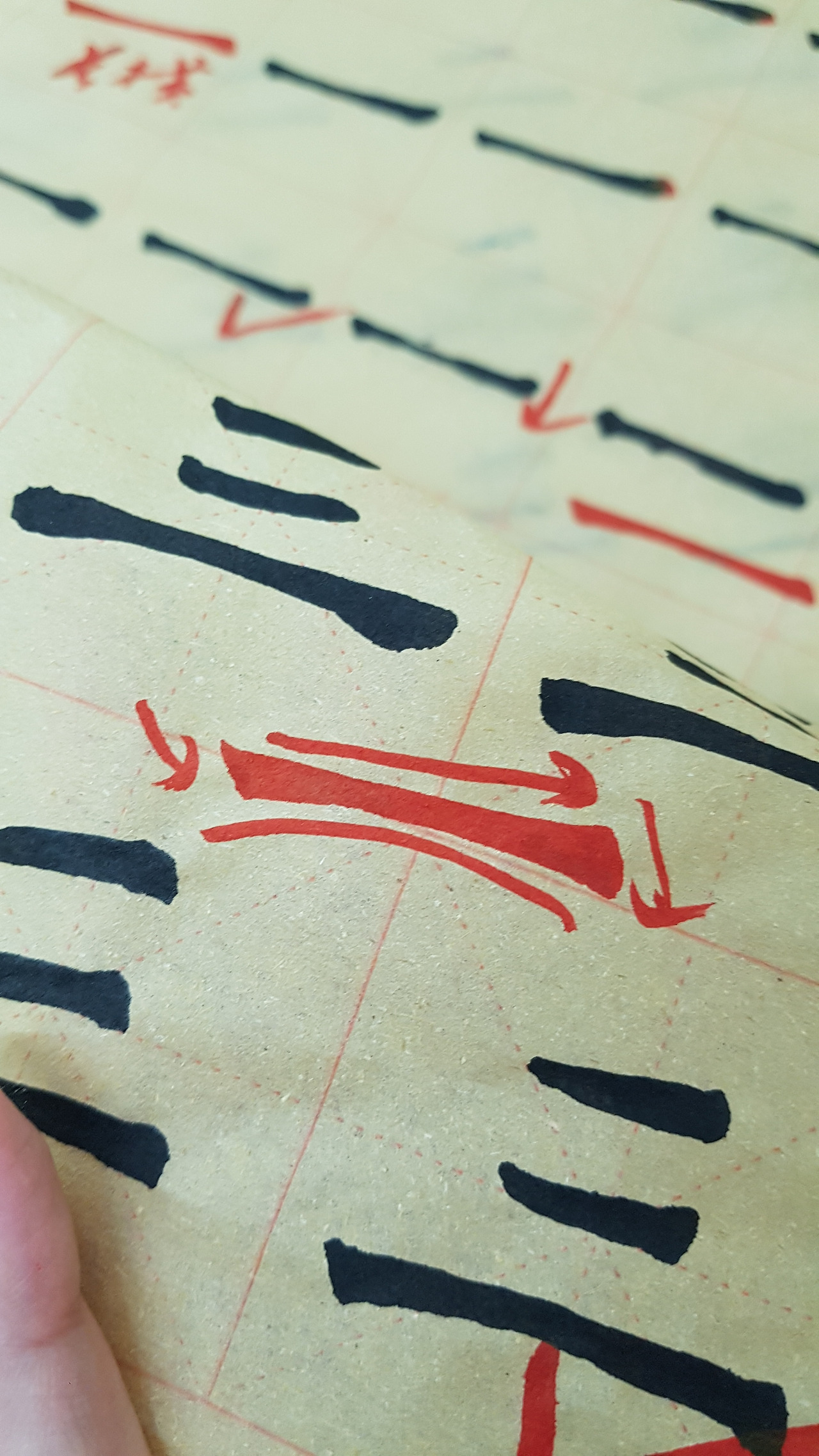 자신의 한계를 맛보는 고통의 수업이 끝날 때쯤 선생님께서 연습용 종이에 오늘 배운 글자를 쭉 쓰더니 숙제라며 내주셨다. 숙제라니! 숙제가 있을 줄은 꿈에도 몰랐다. 선생님께서 붓도 추천해주셨다. 얼른 타오바오로 붓글씨 도구 세트 사야겠다. 열심히 하다 보면 언젠가는 붓이 내 마음대로 움직여주겠지?