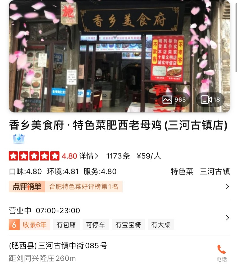 씨엔구로우를 나와 조금 걷자 어째 배에서 꼬르륵 소리가 난다. 아침부터 부산스레 차를 타고 이동하느라 생각지 못했는데 점심을 먹을 시간이 된 것이다. 부랴부랴 근처에 맛집이 있는지 검색해보는데, 생각보다 선택지가 많지 않다. 그래도 따중뎬핑으로 평점 높은 곳을 간다면 실패하진 않겠다는 생각에 찾은 식당이 이곳 '향향미식부(香乡美食府)'. 아무래도 안휘성의 옛 마을에 왔으니 이곳 특색의 음식을 먹는 것이 좋겠다는 생각으로 고른 곳이다. (사실 지역 음식을 파는 집 말고는 갈만한 곳이 별로 없었다는 것이 함정)