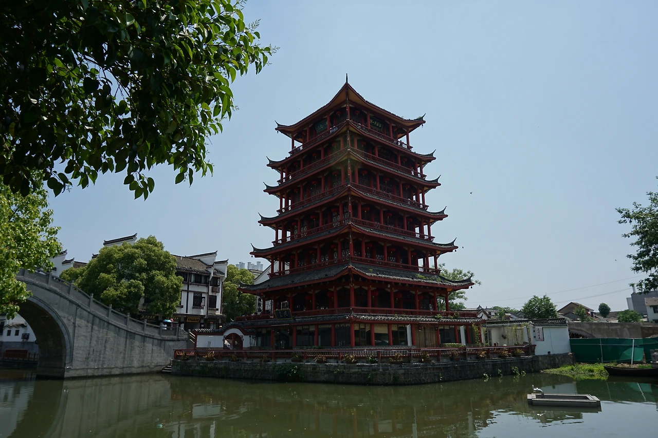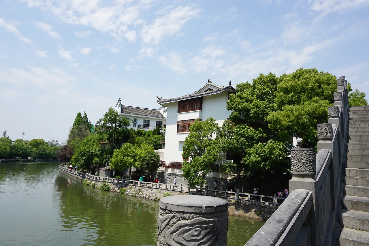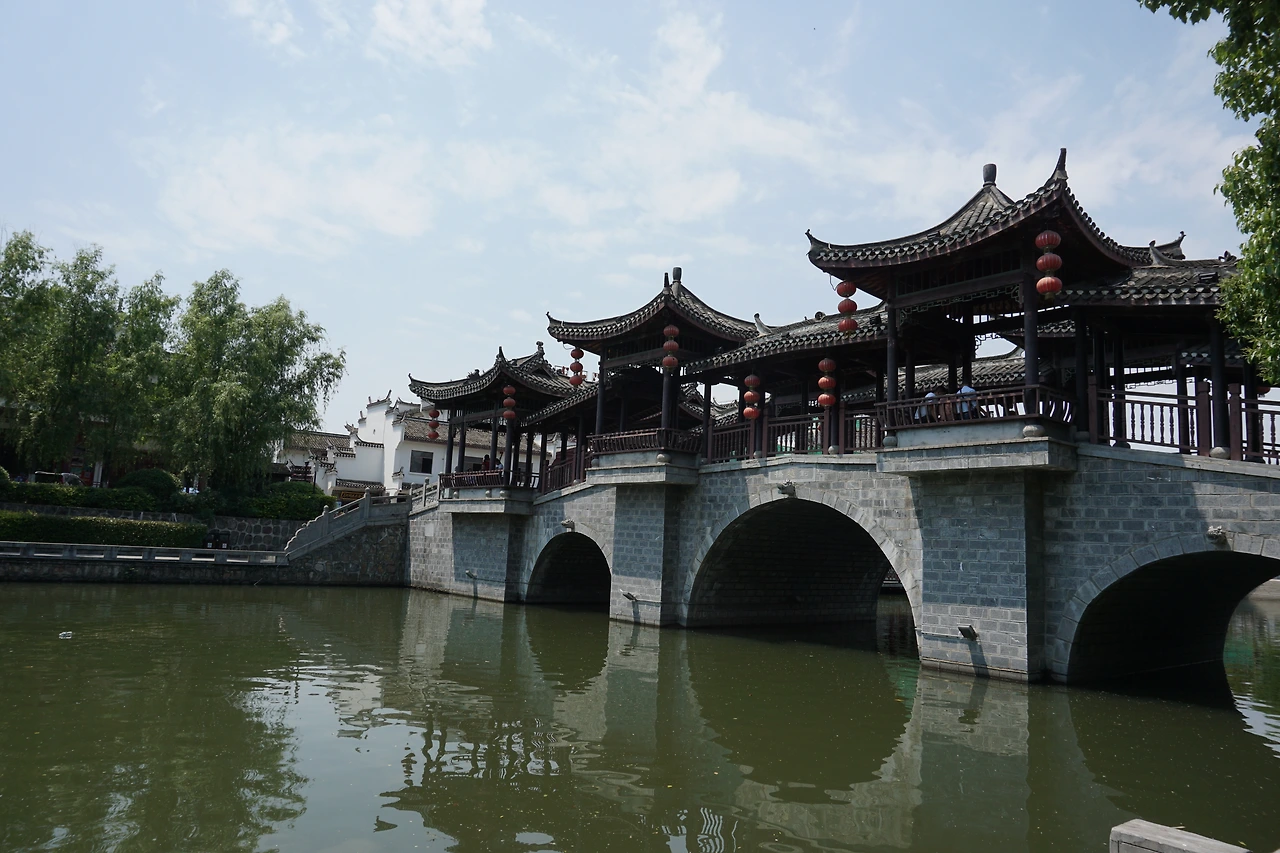 강을 따라 걷다 보면 싼허구쩐의 랜드마크라고 하는 망월각(望月阁)과 그 주변에 있는 아치형 다리들을 만날 수 있다. 총 7층으로 이루어진 망월각은 아마 밤 풍경이 더 아름다울 듯싶었는데, 들어가려면 입장료를 내야 한다고 하여 들어가 보진 않았다. 오히려 나는 그 맞은편에 있던 화려한 다리에 눈이 더 갔는데, 아마 후에 유지보수를 하면서 정자 같은 모양을 더 첨가했을 것 같긴 하지만, 망월각과 함께 구쩐에 고풍스러운 모습을 더해주고 있었다.