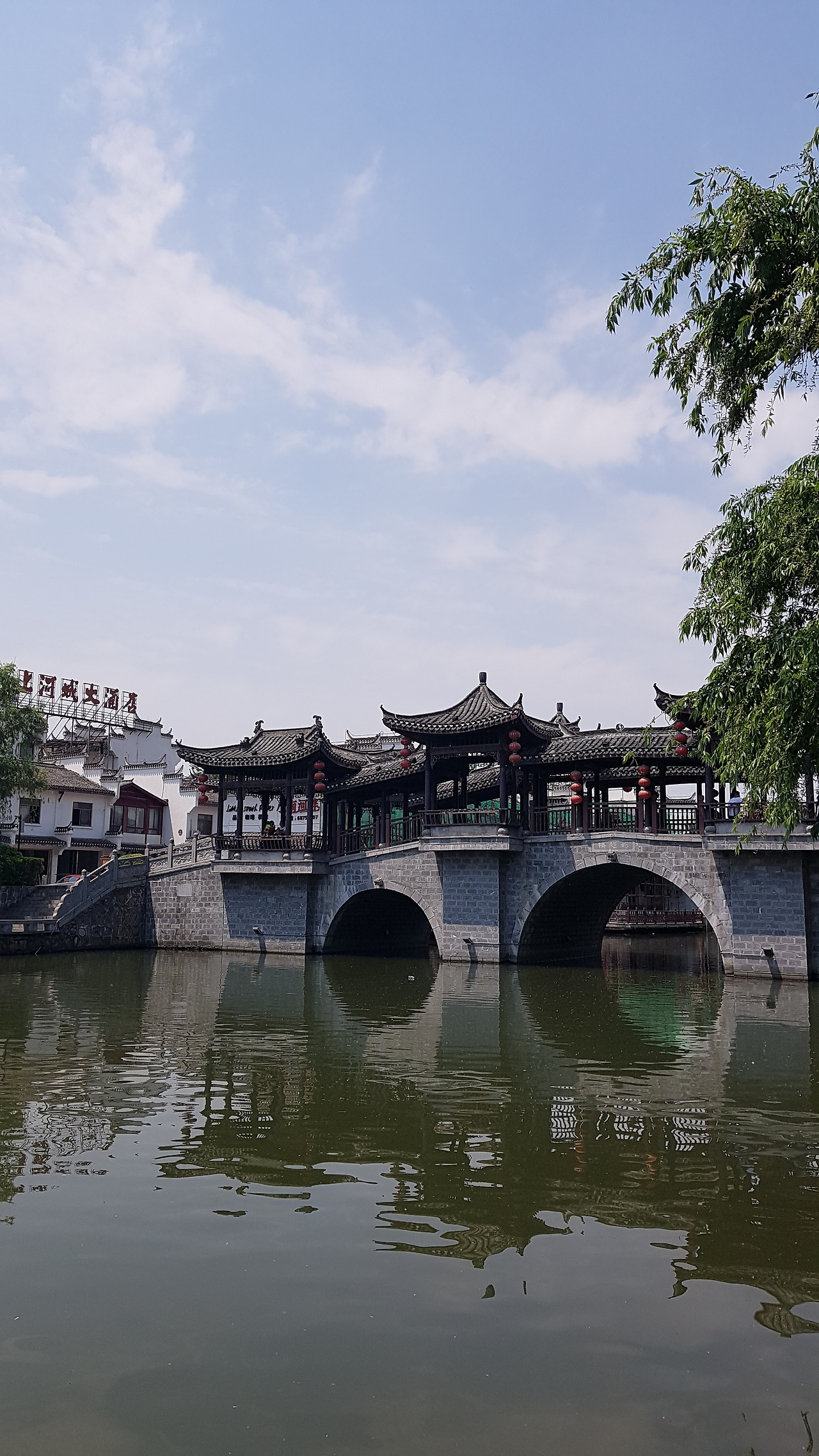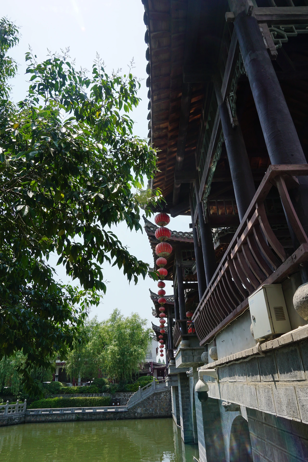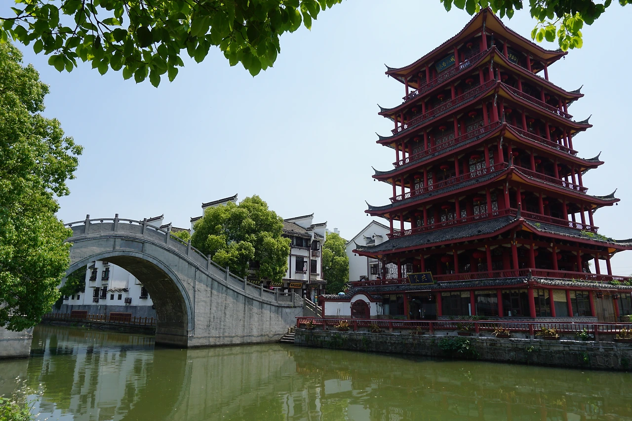 강을 따라 걷다 보면 싼허구쩐의 랜드마크라고 하는 망월각(望月阁)과 그 주변에 있는 아치형 다리들을 만날 수 있다. 총 7층으로 이루어진 망월각은 아마 밤 풍경이 더 아름다울 듯싶었는데, 들어가려면 입장료를 내야 한다고 하여 들어가 보진 않았다. 오히려 나는 그 맞은편에 있던 화려한 다리에 눈이 더 갔는데, 아마 후에 유지보수를 하면서 정자 같은 모양을 더 첨가했을 것 같긴 하지만, 망월각과 함께 구쩐에 고풍스러운 모습을 더해주고 있었다.