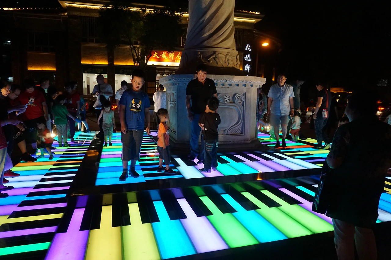 민원광장의 아치형 문 맞은편에는 아래와 같이 발로 연주할 수 있는 건반 조형물이 있었는데, 주말 저녁이라 그런지 정말 많은 가족들이 아이와 함께 이곳에서 놀고 있었다. 요새 워낙 코로나로 시달리다 보니 이렇게 마스크 없는 사진이 약간 적응이 안 된다.
