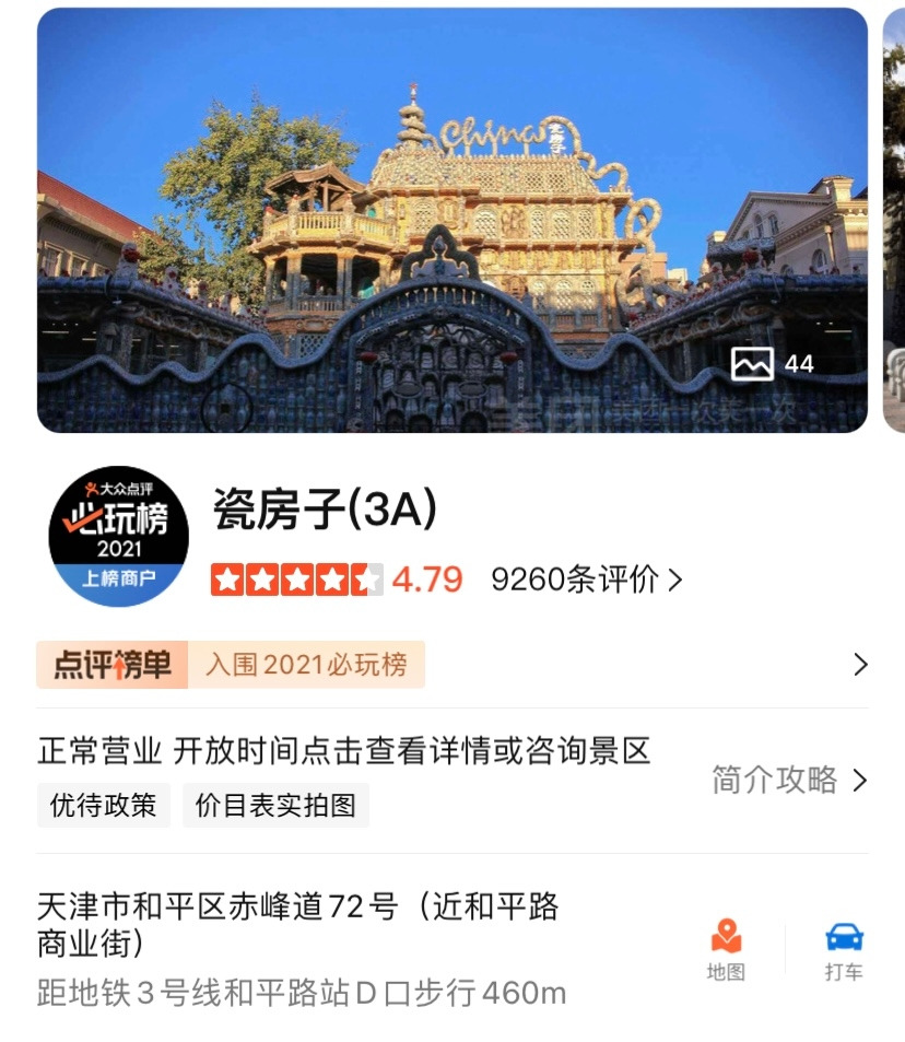 톈진에는 중국인들이 '세상에 둘도 없다(举世无双)'이라고 묘사하는 건물이 하나 있다. 그 이름은 츠팡즈(瓷房子). 도자기를 뜻하는 '츠(瓷)'와 집을 뜻하는 '팡즈(房子)'가 이어져 만들어진 단어로, '도자기 집'이라는 뜻이 된다. '도자기 집'이라는 이름에 걸맞게 이 집은 4,000여개의 도자기, 400여개의 조각품, 7억여개의 도자기 조각, 13,000여개의 자기 접시 및 그릇 등으로 만들어져 그야말로 '자기'에서 시작해 '자기'에서 끝나는 집이다. 게다가 7억여개의 도자기 조각들은 중국 각 시기를 대표하는 도자기 작품을 모두 포괄하고 있어 단순히 장식에 그치는 것이 아니라 역사적인 가치도 지니고 있다.