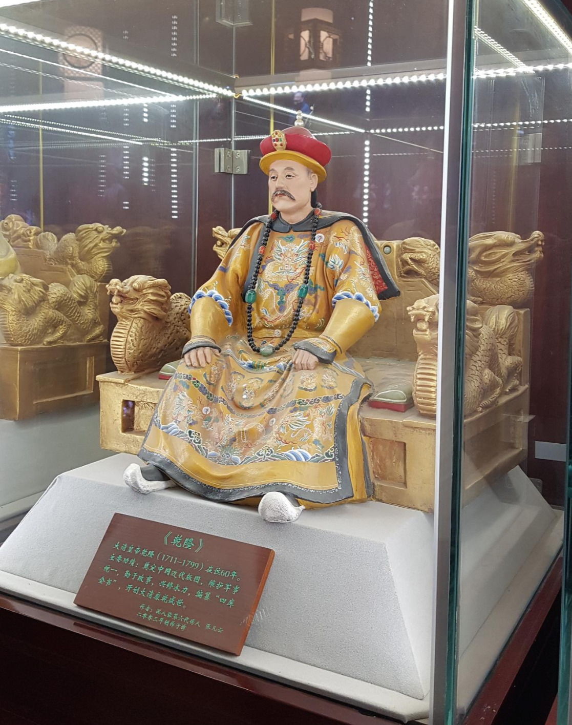 궁금해서 이 진흙인형을 파는 가게에 들어가봤다. 심심풀이용 인형을 파는 줄 알았는데, 엄청난 작품들이 많다. 위 사진은 청나라 건륭 황제를 만든 것인데, 아래를 잘 보면 '니런장 제 6대 계승자'가 만든 작품이라고 적혀 있다. 곤룡포에 수놓인 자수들의 그림이 남다르다.