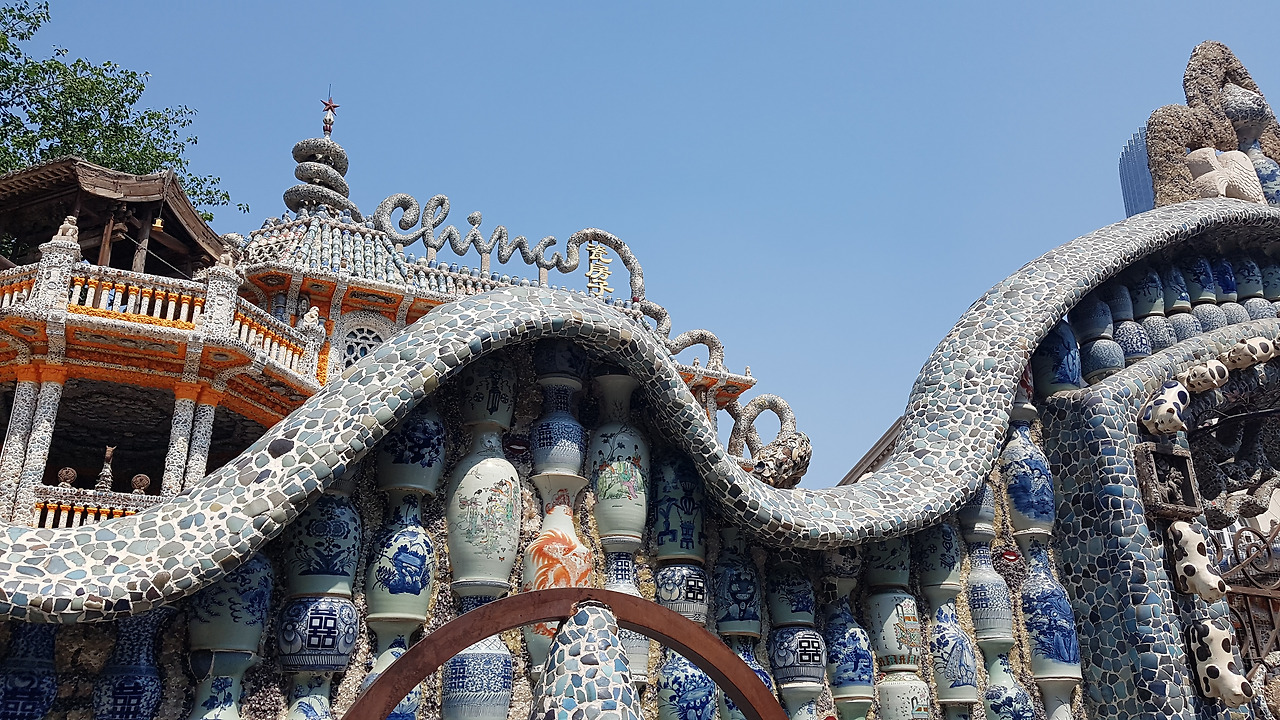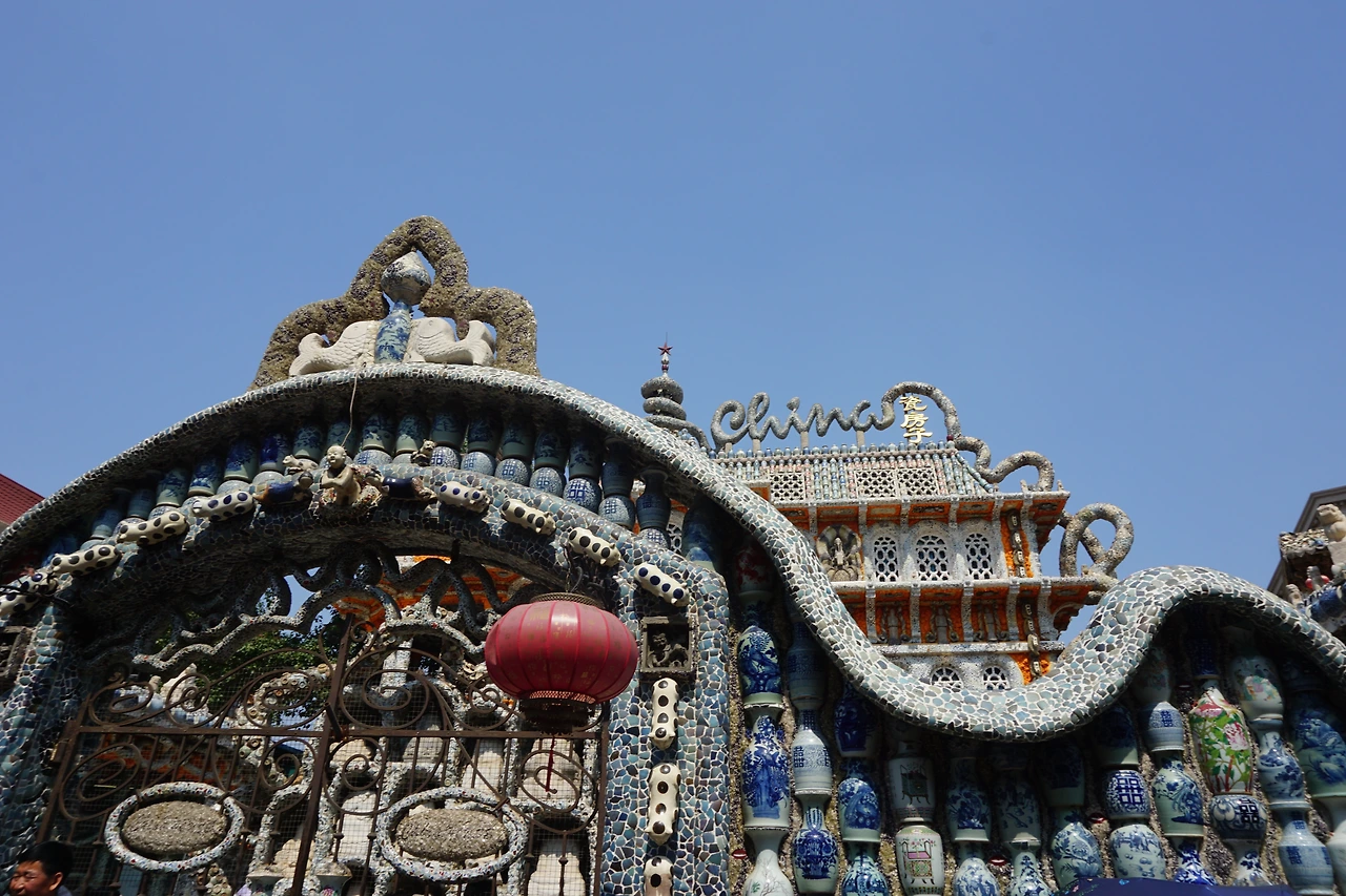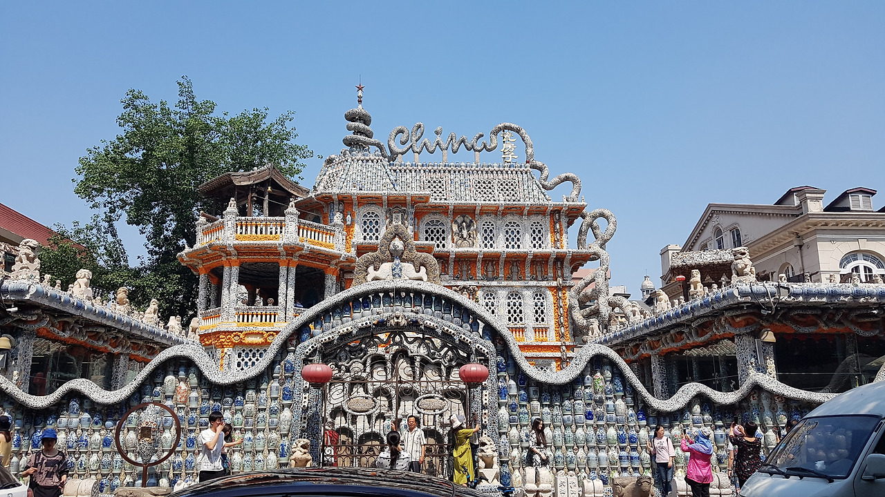허핑루와 멀지 않은 곳에 위치한 츠팡즈(瓷房子)는 그 입구부터 위용이 넘쳤다. 뭐 얼마나 대단하겠어 싶었는데 정말 입구의 담장부터 문, 지붕, 창틀까지 모두 도자기로 덮여있었다. 꼭대기에는 영어로 China라고 적혀있고 그 옆에 한자로 츠팡즈(瓷房子)라고 적혀있었는데, 이 포인트가 중국 정부의 수요와 딱 맞아 떨어지지 않았을까 싶다. 입구부터 사진을 찍으려는 사람들이 많아 사람이 보이지 않는 사진을 찍기는 불가능에 가까웠다. 츠팡즈의 풀 네임은 중국츠팡즈박물관(中国瓷房子博物馆). 입장료는 50위안이다. 표에는 영어로 '허핑턴 포스트에서 2010년에 세계의 독특한 디자인을 가진 박물관을 선정했는데, 그 중에 한 곳이 이곳이며, 중국 박물관, 그것도 개인 박물관으로서는 유일하게 선정되었다'는 사실을 자랑스럽게 적어두었다. 입장료가 싼 편은 아니다. 하지만 한 바퀴 둘러보고 나면 입장료 값이 아깝진 않다.