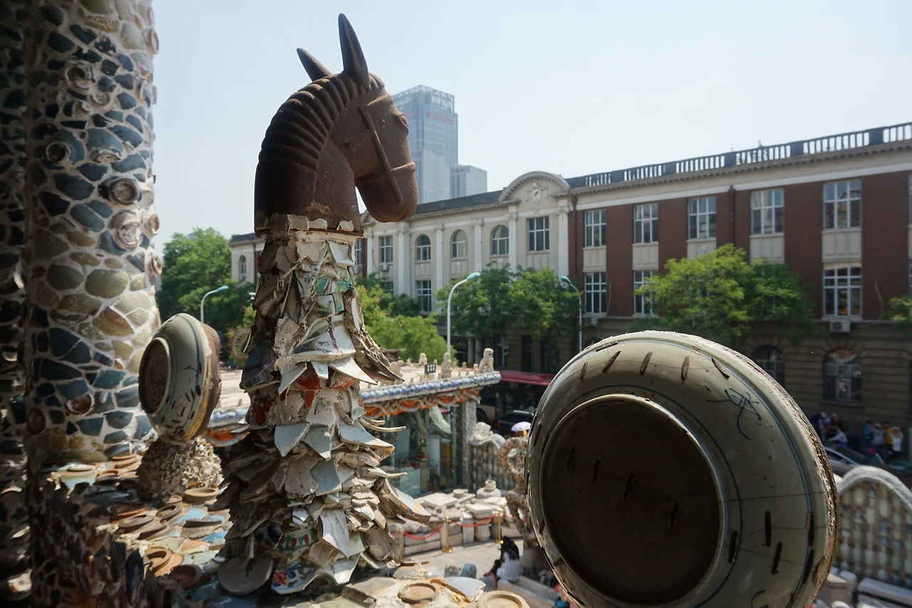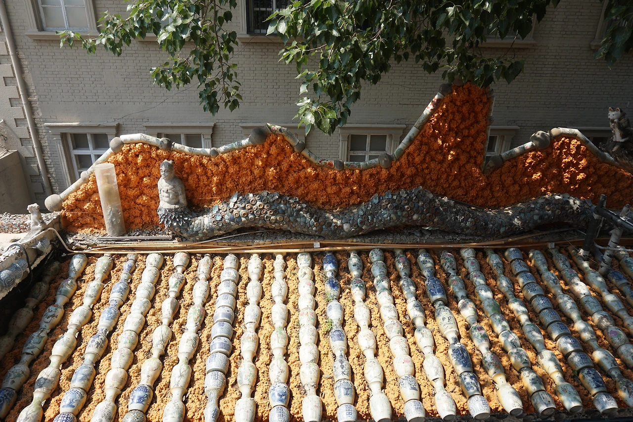 2층엔 테라스 같은 공간이 따로 마련되어 있는데, 이곳에서 밑에선 볼 수 없는 츠팡즈의 윗쪽을 볼 수 있고, 아래쪽 풍경을 조망할 수도 있다. 개인적으로 난 이 테라스가 참 마음에 들었는데, 도자기 병들을 기와처럼 사용해 지붕을 한 땀 한 땀 꾸며놓은 것이나 말 목의 털을 도자기 파편으로 묘사한 것 등이 인상적이었다. 공간 전체적으로 주인이 신경써서 만들어냈다는 느낌이 든다.