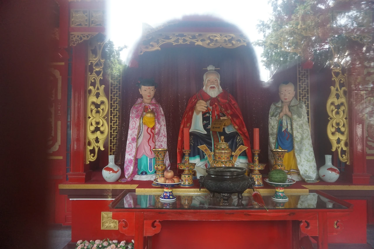 건물 앞 정자에 기원패들이 참 많이 달려있는데, 누가 양연각 아니랄까봐 그 모양이 모두 하트 모양이다. 좋은 인연이 나타나기를 바라는 중국인의 마음이 이곳에 많이 매달려있다. 누각에 들어가면 할아버지 한 분과 동자들로 구성된 모형이 나오는데, 여기 계시는 할아버지가 그 유명한 월하노인(月下老人)이다. 중국에서는 위에라오(月老)라고 불리는 이분이 바로 짝을 점지해준다는 분이다. 이미 짝이 있는 나는 얼굴만 뵙고 내려왔다.