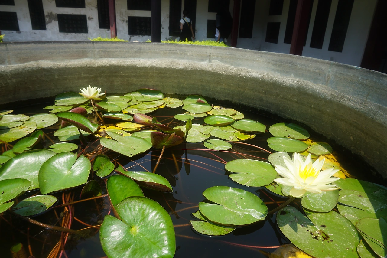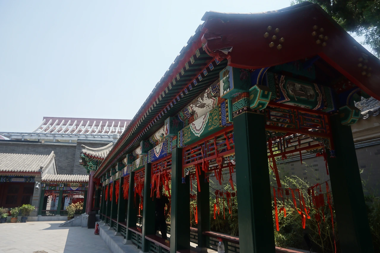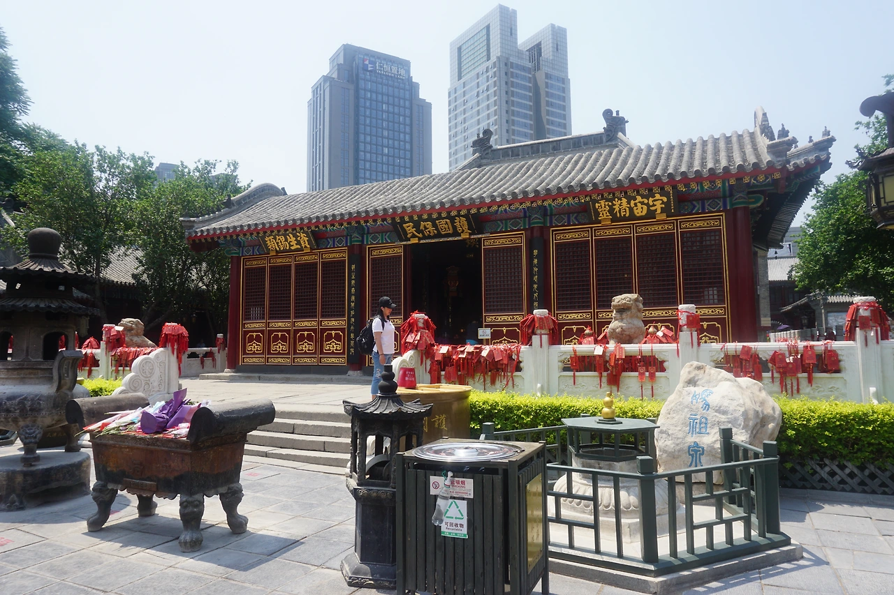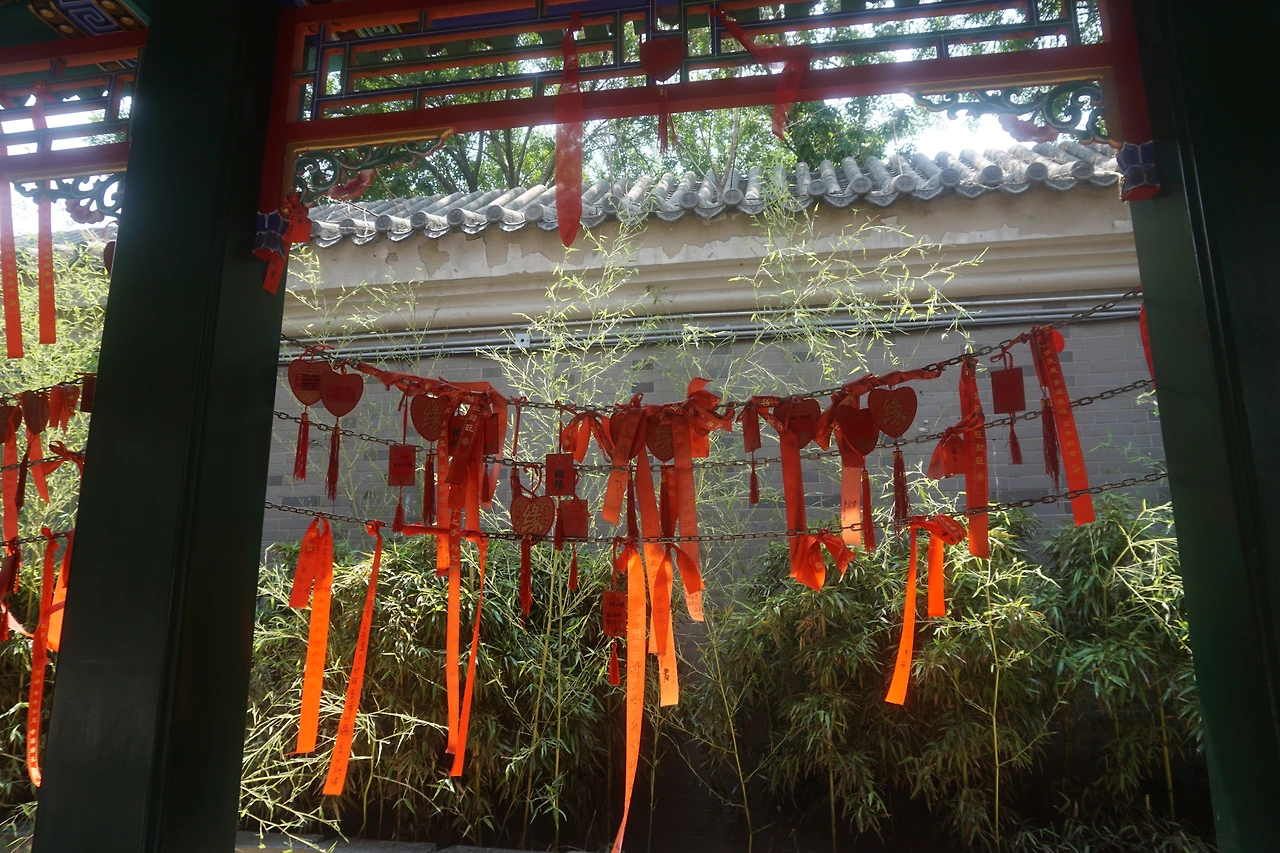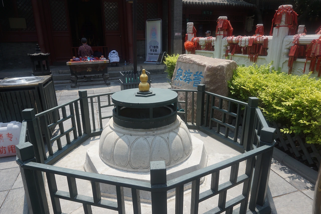 소담스럽게 피어있는 연꽃 화분을 지나서면 우주와 나라의 안녕을 바라는 사당과 그 앞에 수없이 매달려 있는 기원패가 보인다. 사당 앞에는 푸지취안(普济泉)이라는 이름의 샘물 자리가 있었는데, 널리 많은 사람들을 구제한다는 뜻의 푸지(普济)라는 이름이 마주의 신화와 맞닿아 있었다.