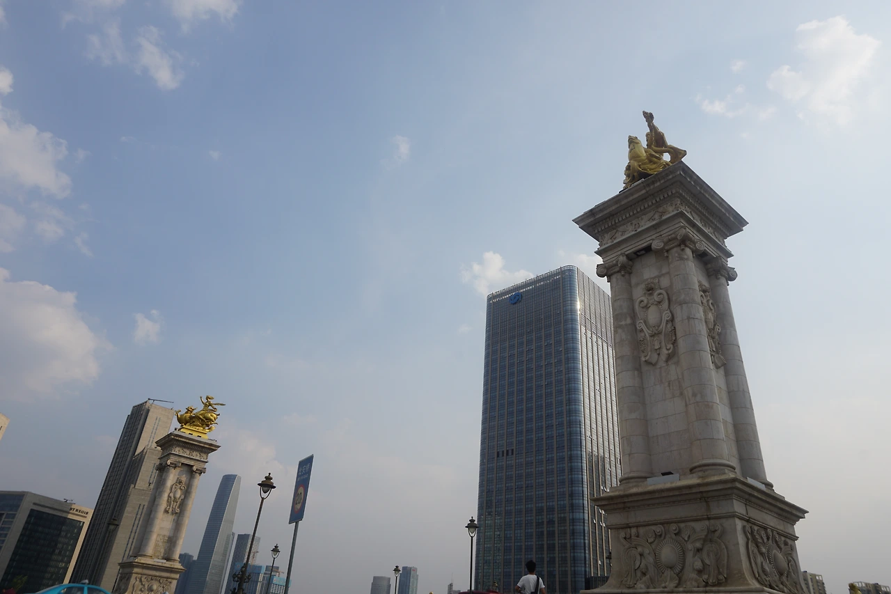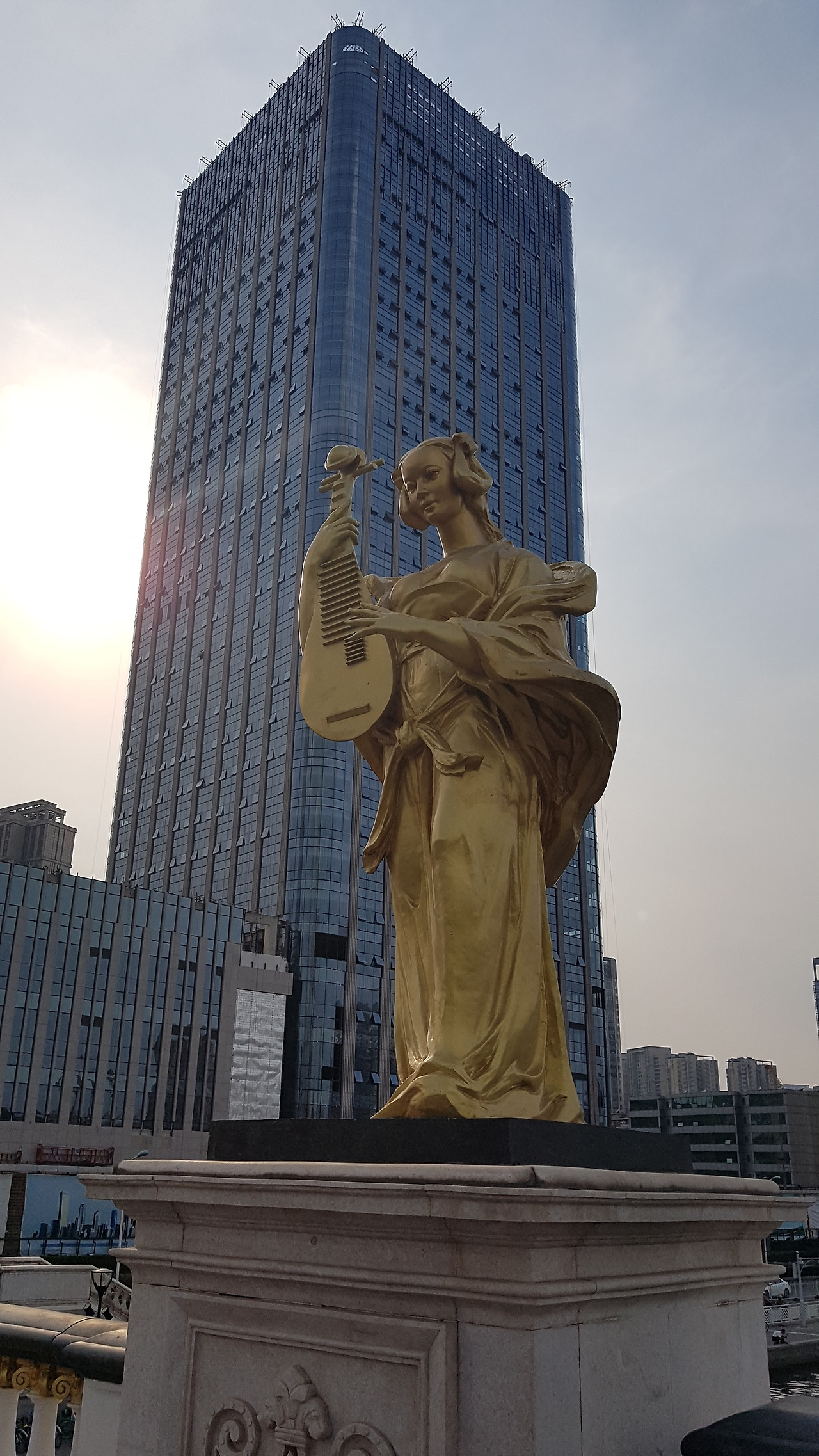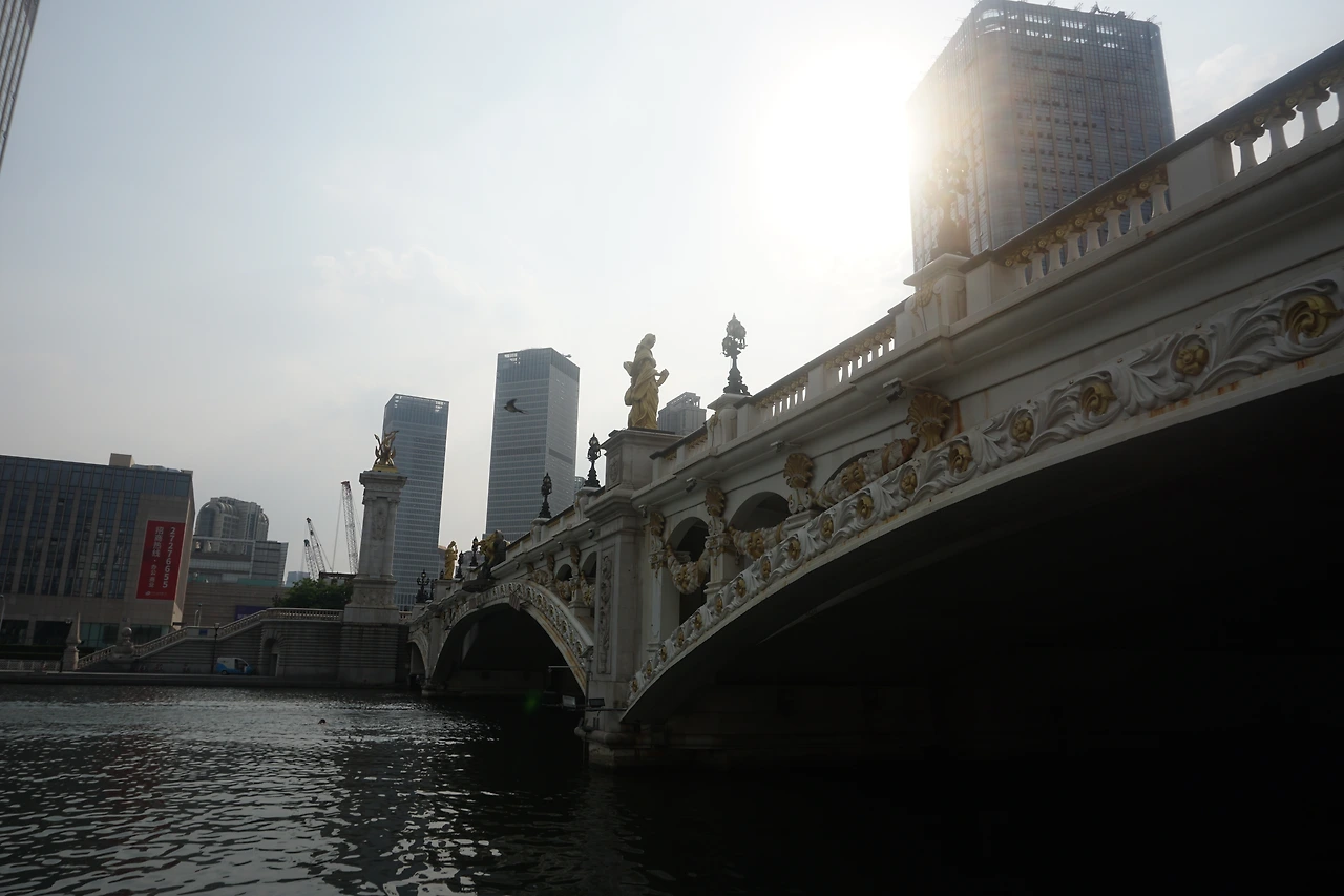 강변을 따라 조성된 하이허 중심광장공원(海河中心广场公园)을 지나면 꽤나 고풍스러운 다리를 하나 만나게 되는데, 멀리 이통빌딩(移通大厦)가 보이는 이곳은 베이안챠오(北安桥)다. 이곳 하이허에는 유럽 언젠가의 디자인을 한 다리가 꽤 많이 있는데, 이 다리도 그중 하나다. 베이안챠오는 본래 1937년에 이곳에 만들어진 다리라는데, 본래는 나무로 된 다리였고 이후 두 번에 걸쳐 개조하면서 지금의 모습을 갖추었다고 한다. 다리 위에는 서로 다른 전통 악기를 든 4명의 여인 동상이 서있다. 서양식의 디자인에 동양의 여인을 둔 것이 특이하다.