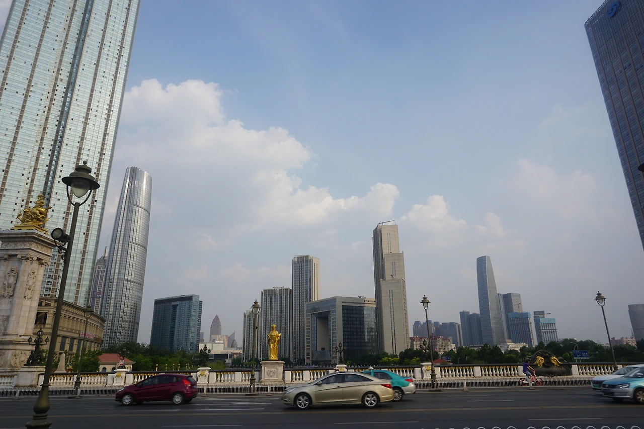 그리고 이 해방교에 올라 보이는 풍경이 위의 사진. 왼쪽, 가운데, 오른쪽 순으로 이런 풍경이 펼쳐진다. 왼쪽에는 톈진 기차역이, 오른쪽에는 톈진의 진완대극장(津湾大剧院)의 건물이 보인다. 그리고 뒤돌아 반대편 강가를 보면 보험관리국과 담배공사, 그리고 주변 풍경과는 그다지 어울리지 않는 마천루가 보인다.