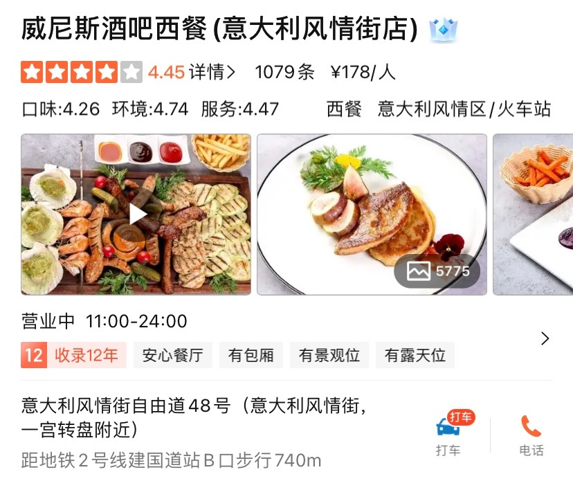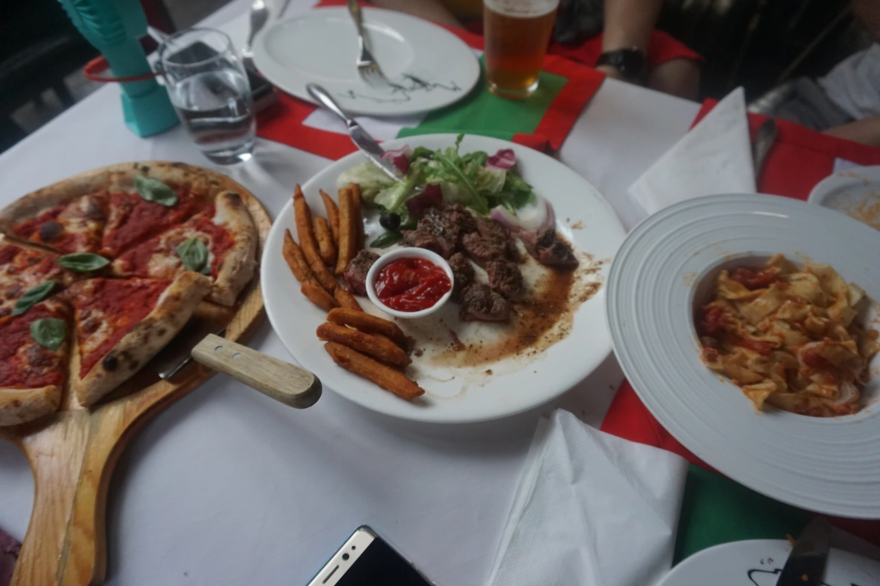 노래를 들으며 쉬고 있으려니 어느새 저녁을 먹을 시간이 되었다. 같은 집에서 요리를 시켜 먹을까 하며 메뉴를 보는데 값도 비싸고 평도 별로 좋지 않아 다른 집을 찾아가 보기로 했다. 이럴 때 도움이 되는 건 역시 따중뎬핑(大众点评). 근처에 베네치아라는 이름의 이탈리안 음식점이 있어 가보기로 했다. 값이야 아무래도 좀 비싼 편이었고 이탈리안 요리의 맛도 어째 평균에 미치지 못하는 느낌이었지만, 그래도 야외 자리에서 이탈리아 풍경구의 이국적 분위기를 즐기며 먹는 저녁은 그 나름대로 즐거웠다. 특히 여기서 베이징에서 브루잉했다는 京A 맥주를 먹게 되었는데, 방금 전에 마신 칼스버그가 잊힐 만큼 시원하고 좋았다. 북경에 가면 꼭 현지의 맥주를 마셔봐야겠다는 생각을 한다.
