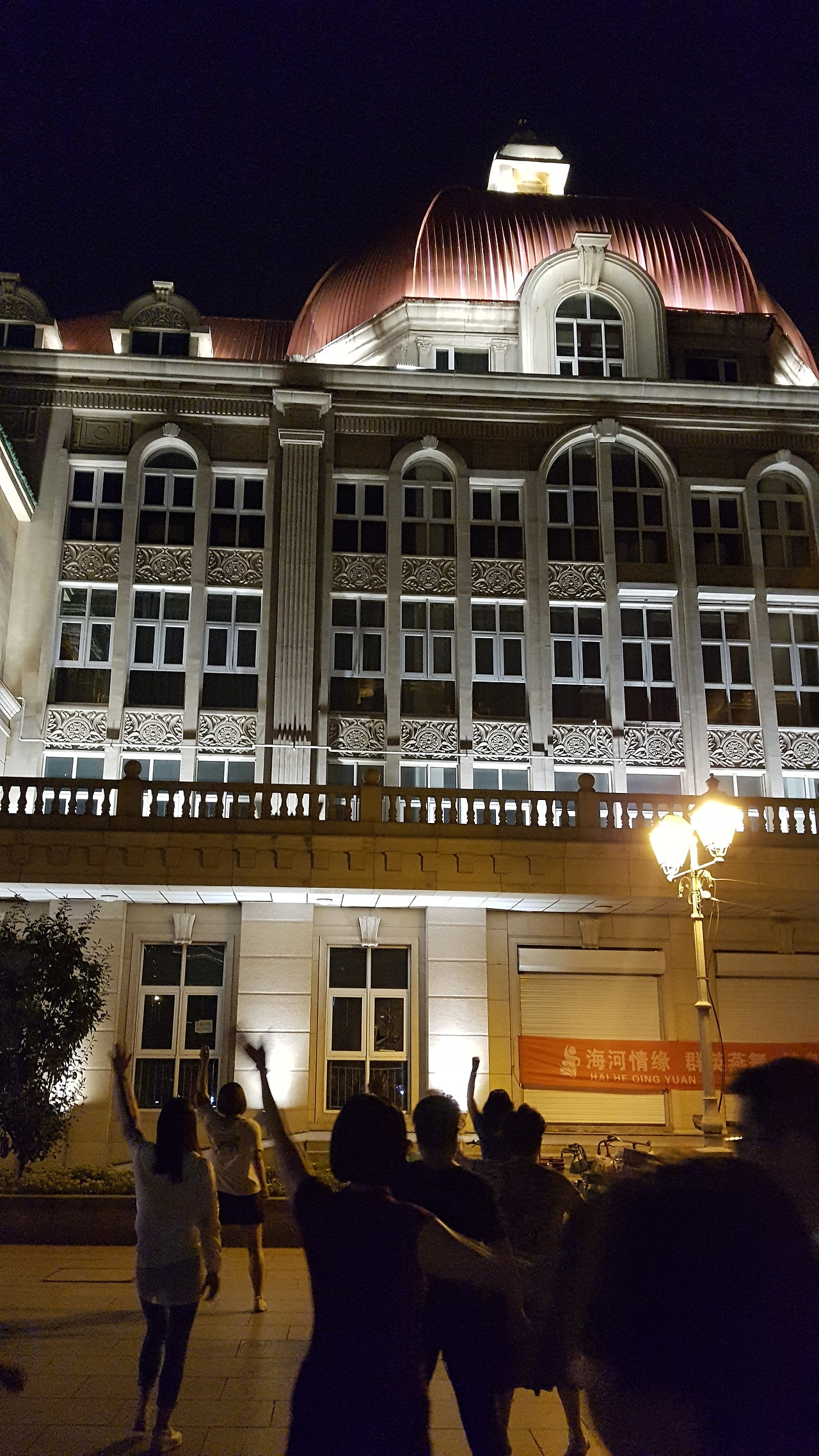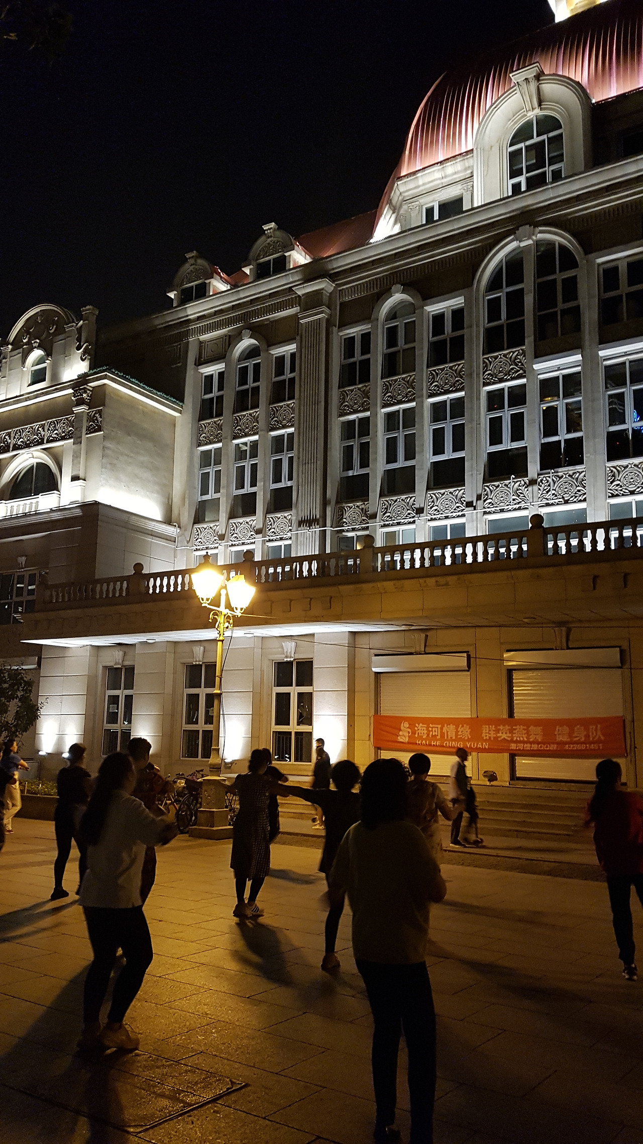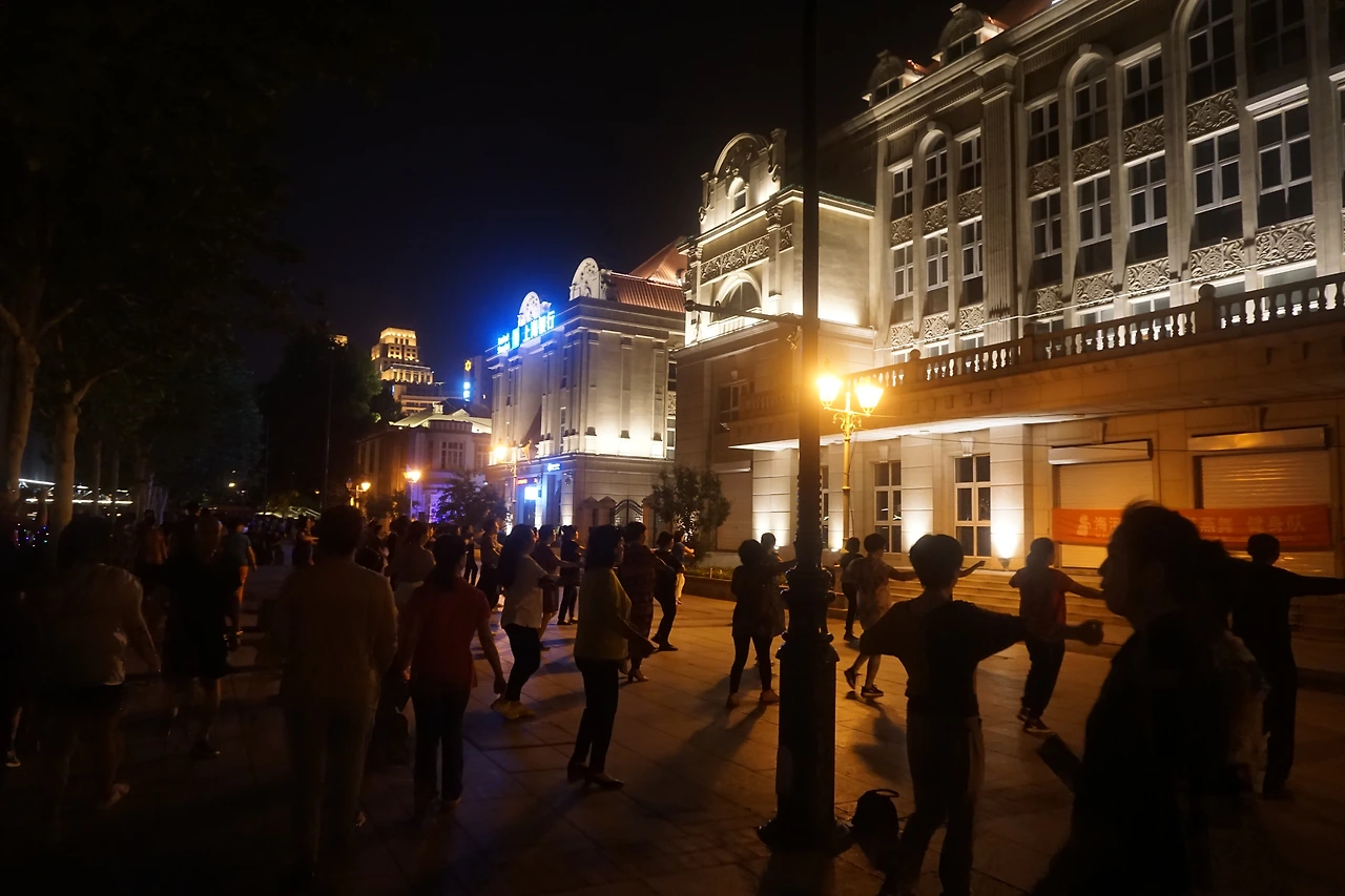 강변을 따라 걷다 보니 이번엔 또 하나의 중국스러운 풍경. 건물 앞에서 야간 광장무(广场舞)를 추는 흥겨운 무리를 만났다. 노래에 맞춰서 다 같이 광장무를 추고 있는데, 생각보다 그 연령대도 성별도 다양하다. 마주칠 때마다 느끼지만 참 건강한 사람들이다.