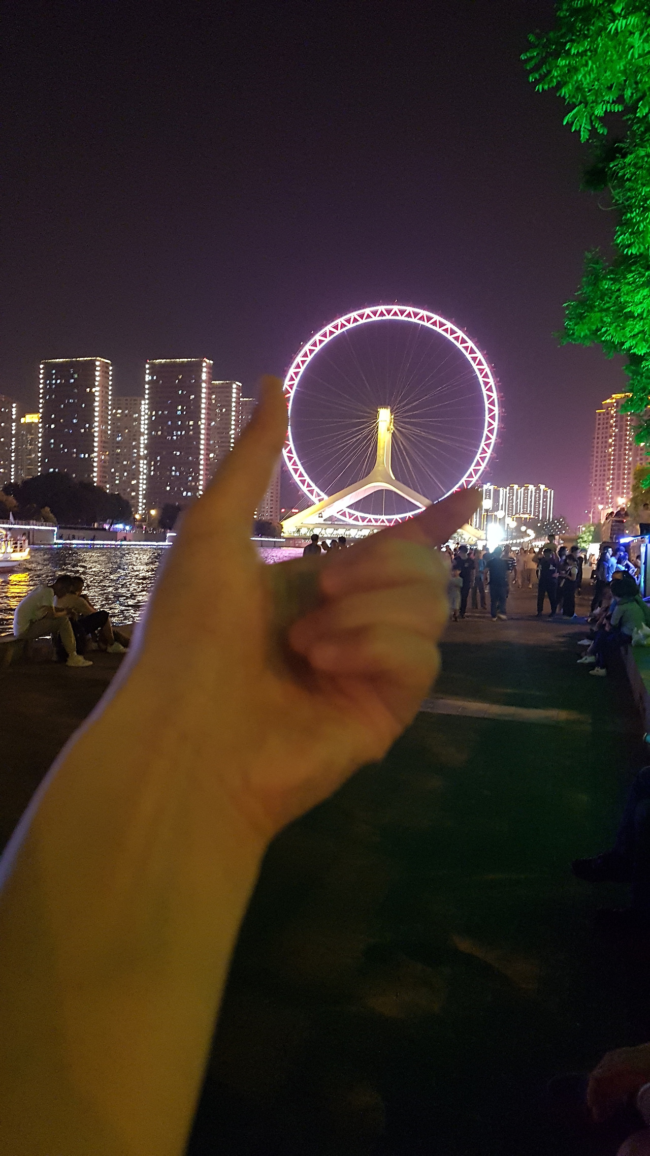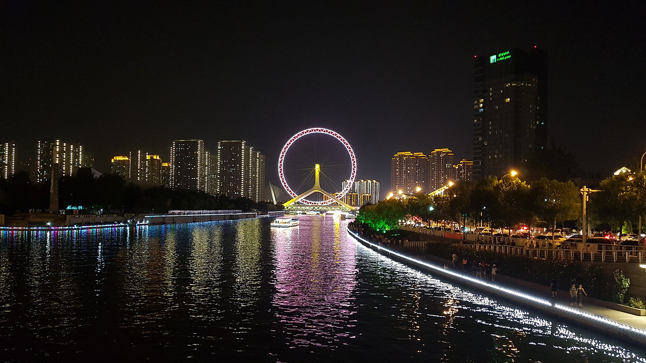 2008년에 만들어진 영락교(永乐桥) 위에 2009년에 만들어진 톈진의 눈(天津之眼). 이름을 영어로 하면 Tianjin Eye, 런던의 London Eye와 연관이 있는지는 모르겠다. 이 톈진의 눈은 관람차다. 강물 위에 만들어져 있어서 타보면 다리 위에 떠있는 것 같은 느낌이 든다고 한다. 올 때부터 이걸 타보겠다는 생각보다는 그냥 야경이 예쁘다고 해서 와본 거라서 실물을 보고 나니 성취감과 함께 묘한 허무함이 밀려왔다. 사람이 너무 많아서 기다려도 타기가 어렵다고 하니, 이쯤에서 길었던 톈진 이틀차를 마무리할 시간이다.