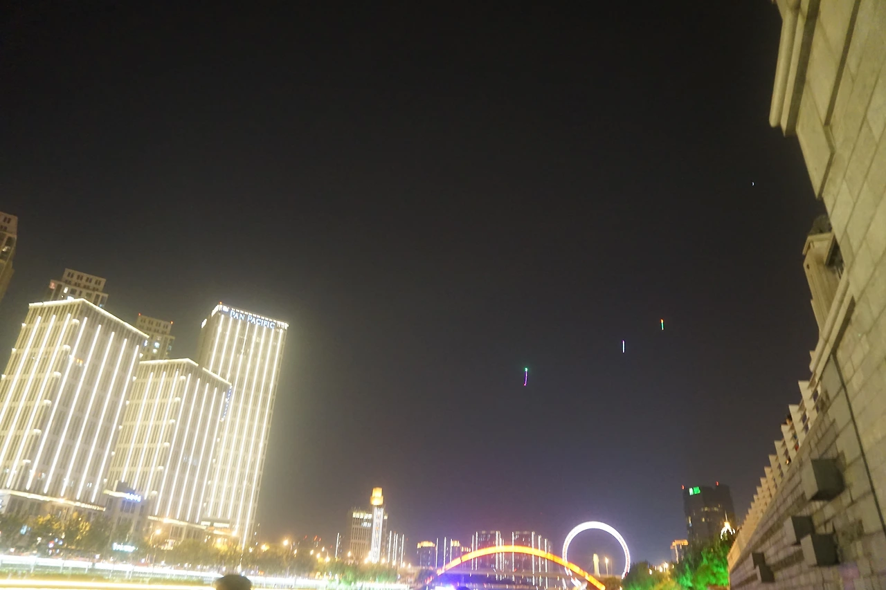 하이허의 밤을 떠올리면 화려한 불빛이나 건물들, 톈진의 눈의 반짝임도 물론 생각나지만 그것보다 눈앞에 떠오르는 풍경이 있다. 그건 바로 아래 사진에서 얼핏 보이는 저 반짝이는 무언가. 하늘을 반짝이며 날고 있는 저 점점이 보이는 무언가. 저 쪼끄만 게 나는 그렇게 생각이 난다. 사실 별 건 아니다. 강변의 잡상인이 팔고 있는 장난감이다. 하늘로 날리면 반짝반짝 빛이 나면서 일정 정도 날다가 아래로 떨어지는 장난감인데, 하늘을 날고 있던 그들 중에 한 80%는 잡상인 스스로가 판촉을 위해 날리고 있는 것이고 20% 정도가 진짜 구매한 소비자가 날리는 것이었다. 톈진의 눈의 화려함도 물론 멋졌지만 이상하게 여행 중 나의 마음을 사로잡는 것은 이런 소박한, 다소 투박하고 조그만 무언가다. 이런 작은 것이 모여 그 도시에 대한 추억을 만든다.
