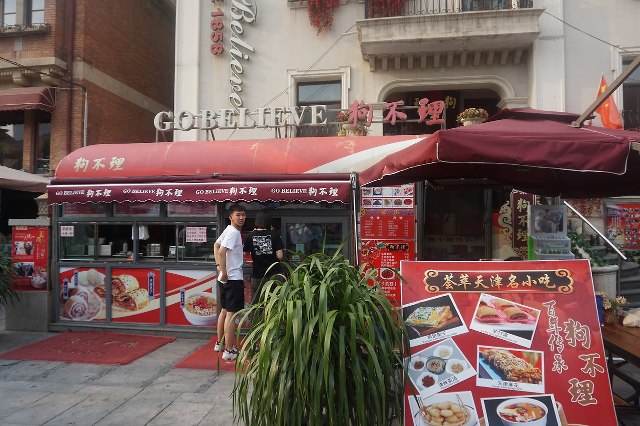 우따다오(五大道)에서도 지나쳤던 거우부리빠오즈(狗不理包子)다. 영어 이름을 Go Believe라고 지었는데 그 이름을 건물에 저렇게 써놓은 것이 참 많은 생각을 하게 만든다. 분명 더 세련되게 만들 수 있었을 텐데.. 북방 도시의 투박함은 이것을 두고 한 말이다. 매장 앞에 간단히 테이크 아웃하여 먹을 수 있는 간식거리를 팔고 있는 듯했다.