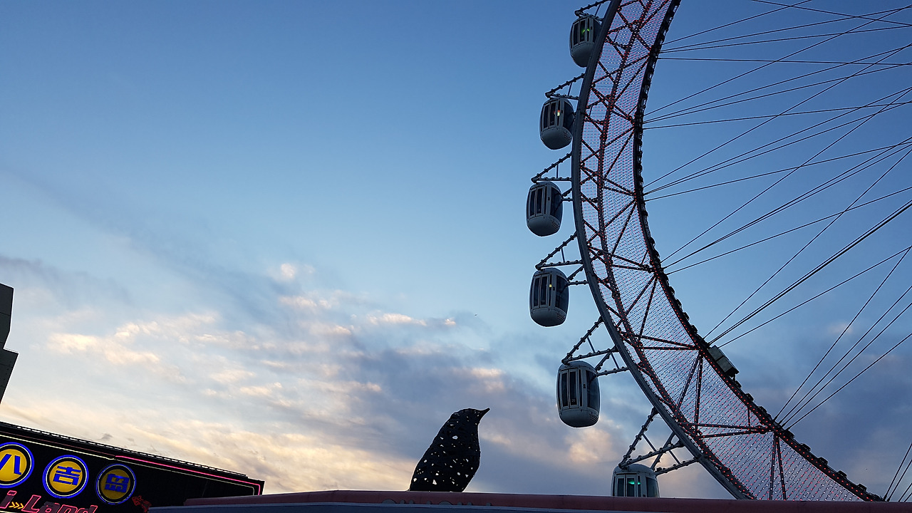 세 번째 사진은 관람차 앞까지 갔다가 우연히 발견한 새 조형물을 보고 찍은 사진이다. 새가 관람차를 보는 것처럼 보이는 구도인 데다 뒤에 보이는 하늘이 너무 멋져서 아직까지도 상하이에서 찍은 사진 중 마음에 드는 사진 1순위에 꼽힌다. 날이 좋을 때 이곳 Joy City에 와보길 추천한다. 예쁜 상하이의 하늘이 당신을 반길 테니.