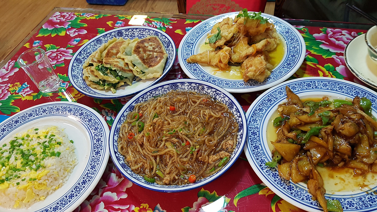 철저하게 내가 좋아하는 요리로만 시킨 메뉴들. 지금 보니 주식(主食)이 너무 많다. 부추만두(韭菜盒子), 계란 볶음밥(蛋炒饭), 게다가 가운데에 놓인 마이샹슈(蚂蚁上树)도 사실상 당면 위주라 주식이나 다를 바 없고. 그나마 요리라고 할 수 있는 게 궈바로우(锅包肉)와 지삼선(地三鲜)인데 이것도 너무 안전한 메뉴들이다. 역시 중국에서는 음식 제대로 주문하는 게 제일 힘들다. 그리고 중요한 건, 맛이 그저 그랬다.. 북경에 있을 때 먹었던 동북 음식과 비교하면 그 맛이 천양지차였다. 아무래도 남방에서 동북 음식을 먹는 건 잘못된 선택인 것 같다. 그래도 친구와 상하이 말도 배우고 이런저런 대화를 하며 먹으니 즐거웠다.