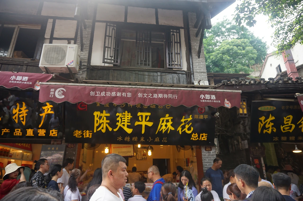 쳔마화는 청나라 말기부터 이 지역에서 무척 사랑받았다고 하는데, 성씨인 쳔(陈)이라는 글자만 전해져 내려오기 때문인지 츠치커우에는 쳔졘핑마화, 쳔챵인마화, 쳔마화 등등 쳔 씨 성을 가진 다양한 이름의 마화 가게가 존재한다. 수많은 쳔 씨 간판을 보고 있으면 마치 한국의 '원조 골목'을 돌아다니는 기분이다. 물론 막상 들어가 보면 마화 맛은 다 비슷비슷하다. 그러니 아무 가게나 골라서 들어가 보자.