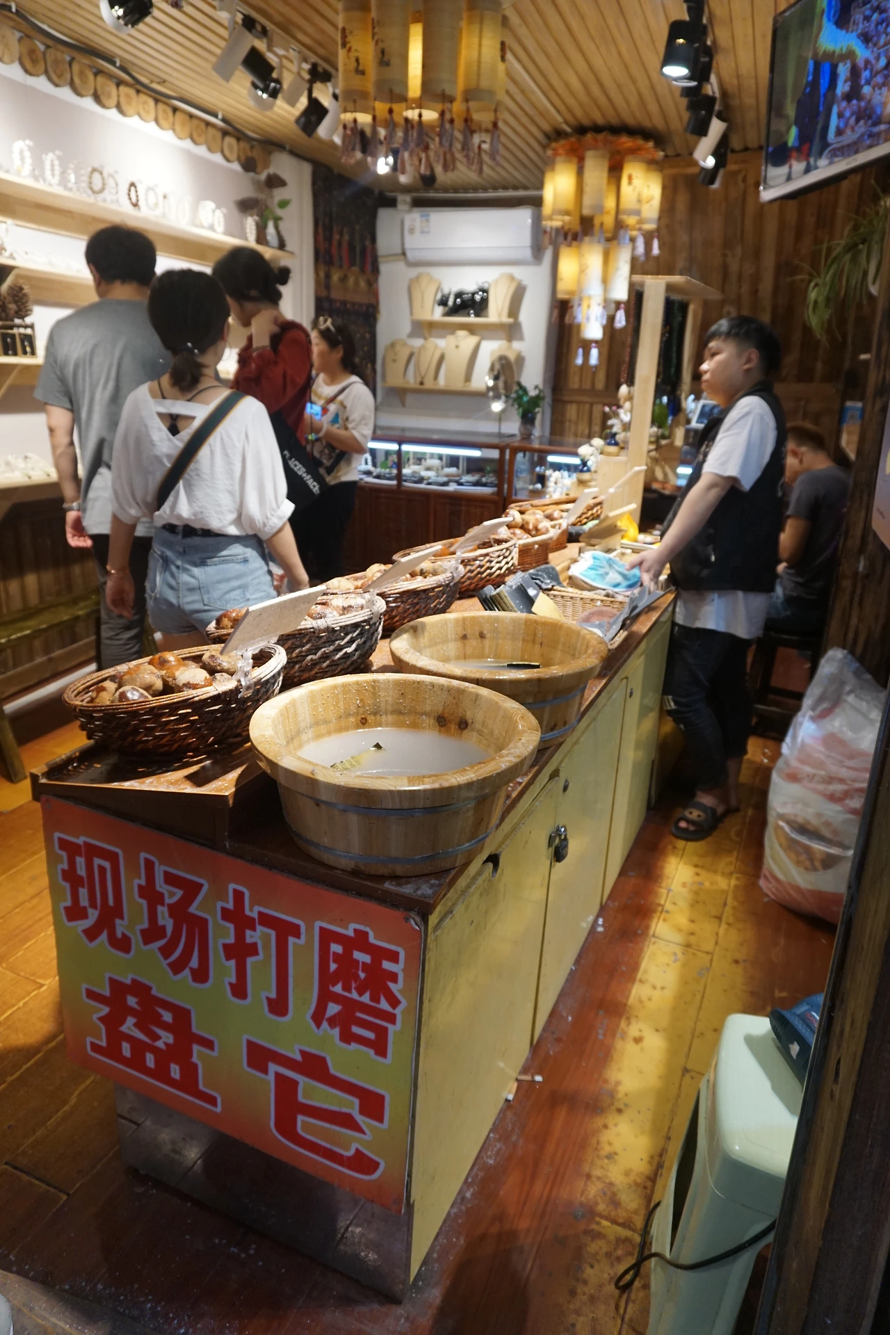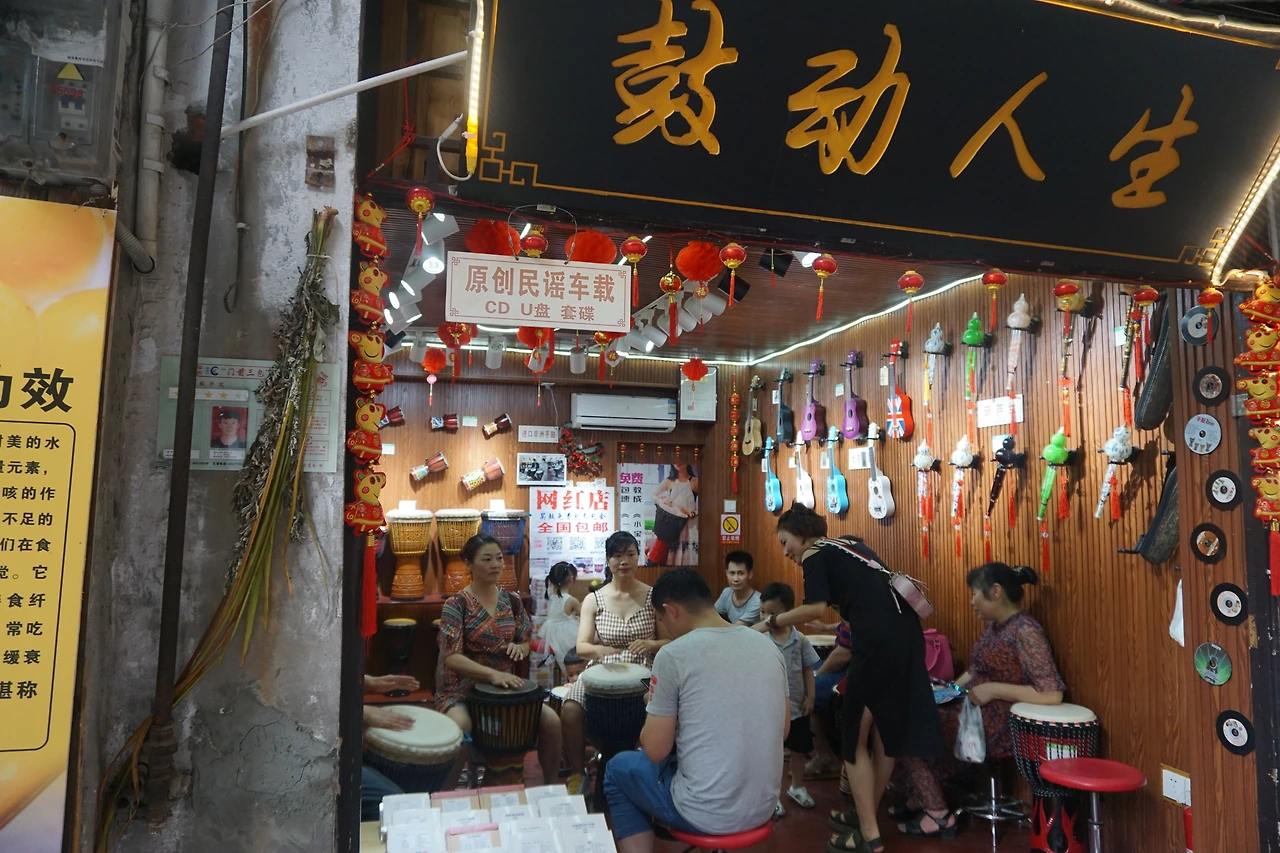 상단 왼쪽 사진은 간판에 고동인생(鼓动人生)이라고 적혀 있는데, 북 고(鼓)자를 써서 북을 포함한 각종 악기를 파는 상점이었다. 특히 우리가 갔을 땐 점포 안에서 직접 북 강습도 하고 있었는데, 홍보 효과를 위해서 하는 것이겠지만 전통 악기를 현재를 살아가는 사람들에게도 알리고자 하는 마음이 전해졌다.