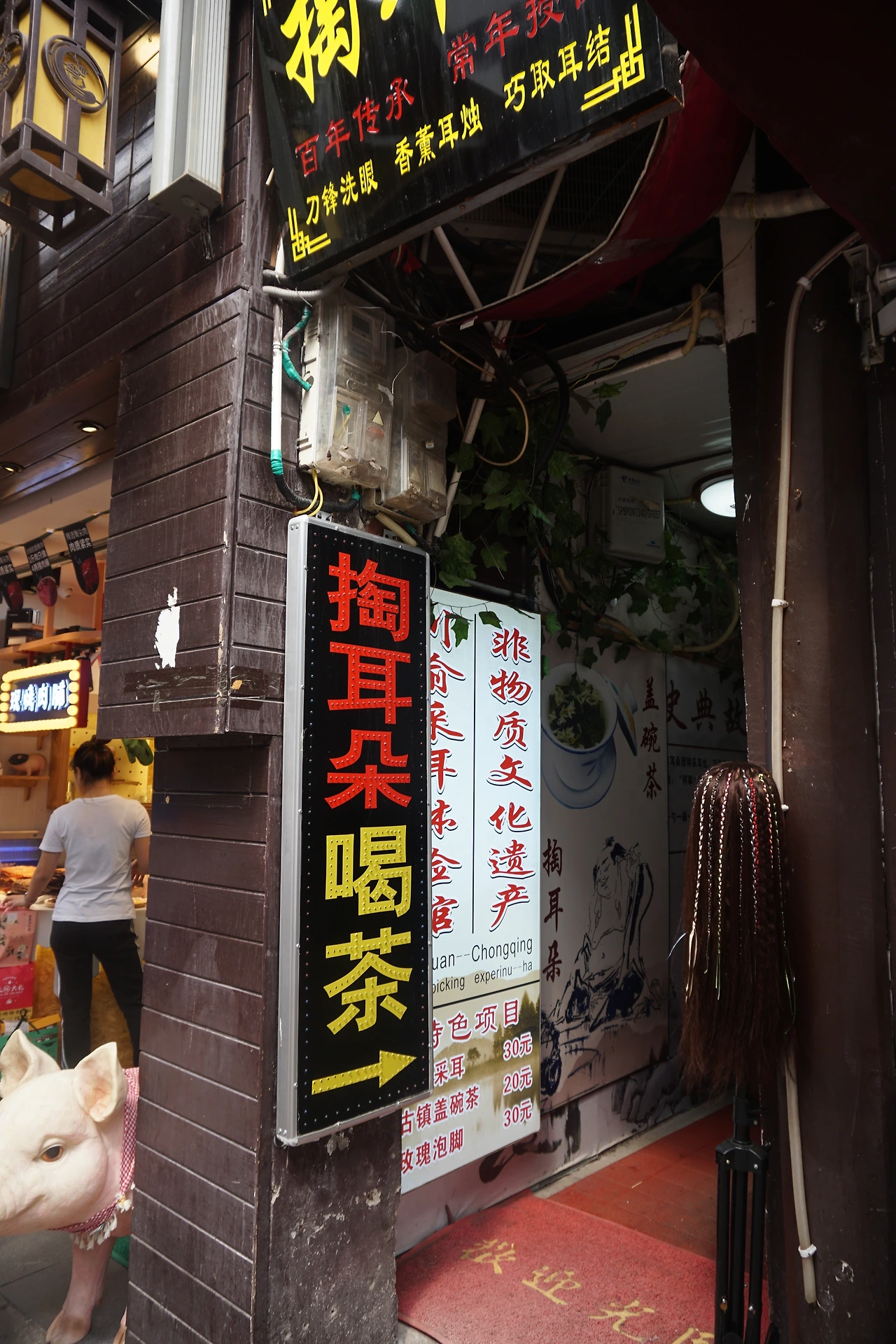 상단 왼쪽 사진은 특히 청두(成都)에서 많이 볼 수 있는 활동, 귀파기(掏耳朵)다. 청두는 바깥에 간이의자를 세팅해두고 손님이 오면 전문적으로(!) 귀를 파주는데, 츠치커우는 아무래도 거리가 넓지 않고 경사진 구조다 보니 밖에 의자를 두진 못하고 건물에 들어가서 하게 되어 있었다. 하지만 쫄보인 나는 충칭에서도 청두에서도 시도해보지 못했다.
