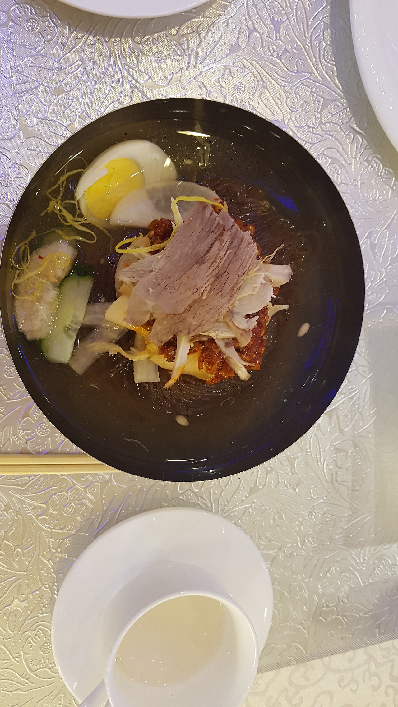 좀 늦은 시간이어서 많이 먹기는 좀 그렇고, 간단하게 평양냉면과 감자전, 떡(打糕)을 시켰다. 전체적인 느낌은, 삼삼-하다? 사실 진짜 평양 음식점에서 먹는 평양냉면의 맛이 내심 기대되었는데, 생각보다 특이한? 독특한? 맛이었다. 내 취향은 아닌, 그런 맛. 진짜 평양냉면의 맛인지는 잘 모르겠다. 감자전도 아주 삼삼. 그나마 설탕이 버무려져 있는 찹쌀떡이 그나마 먹을만했다. 전체적으로 취향은 아니었다. 하지만 내가 북한 음식에 조예가 있는 편도 아니고, 평소에 자주 먹던 것도 아니므로 그냥 개인적인 의견에 불과함을 밝힌다.