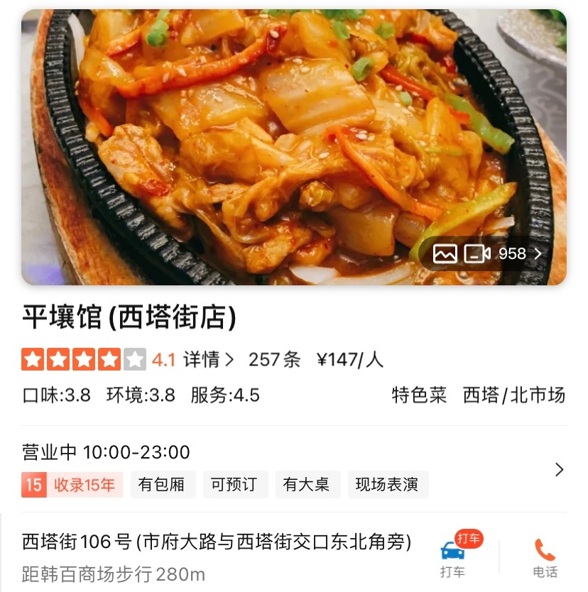 나름대로 따중뎬핑에 15년 연속으로 수록된 평양관은 저녁 시간에는 식사와 함께 북한에서 온(or 왔다고 주장하는) 사람들의 공연을 볼 수 있다고 하여 유명한 곳이다. 찾아보니 우리가 방문할 시간쯤에도 공연이 있다고 하여 일단 들어가 봤다. 쓰여있던 대로 공연을 볼 수는 있었는데 굉장히 음.. 매체에서 보는 북한 사람들의 공연 느낌이 많이 나서 그다지 기대한 만큼 좋지는 않았다. 오히려 식사에 좀 방해가 된다는 느낌?